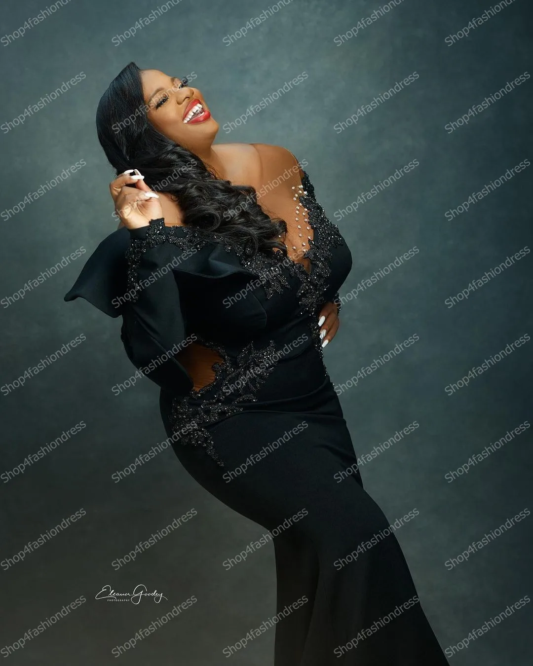 Черные вечерние платья Aso Ebi, короткие юбки с аппликацией из бисе...