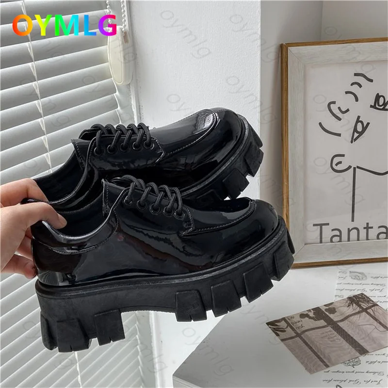 Новинка, маленькие кожаные туфли в студенческом стиле, женские туфли на платформе и высокой платформе, Трендовые туфли на шнуровке