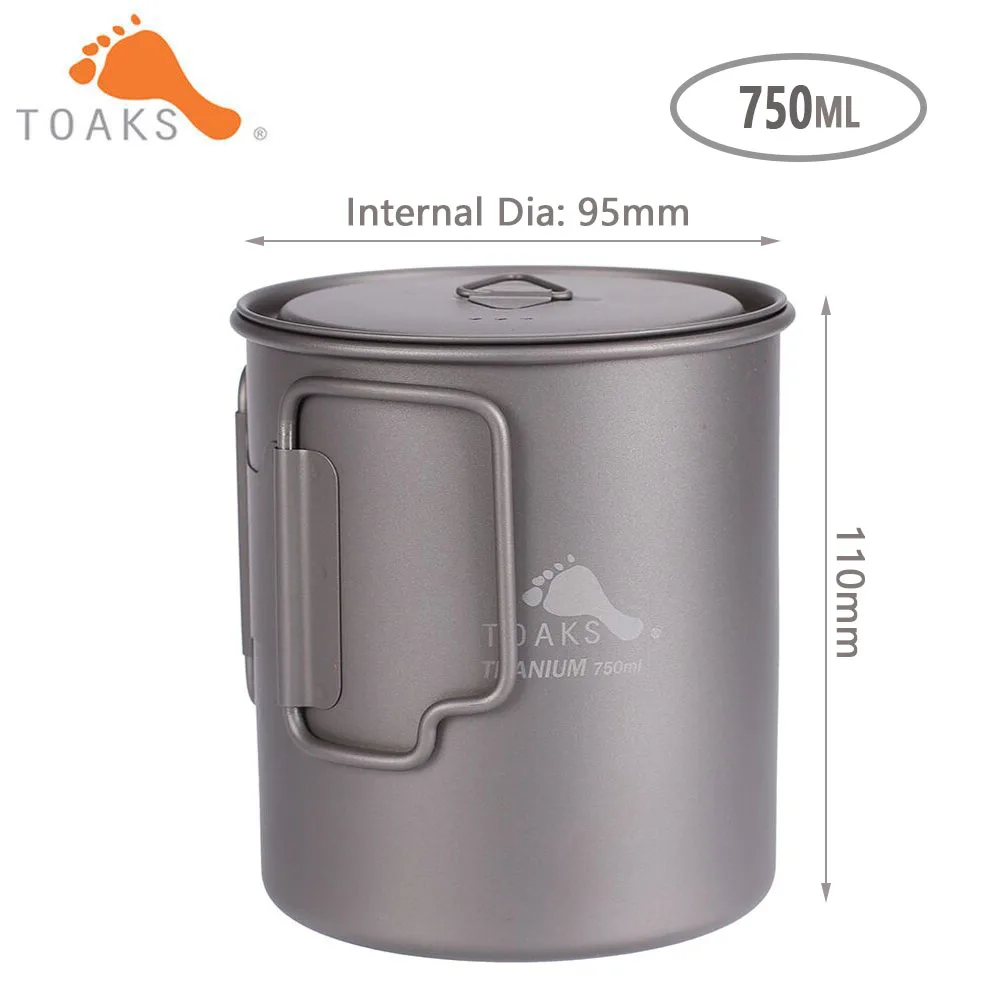 Титановый горшок для кемпинга TOAKS, 750 мл, Ультралегкая портативная титановая чаша-750