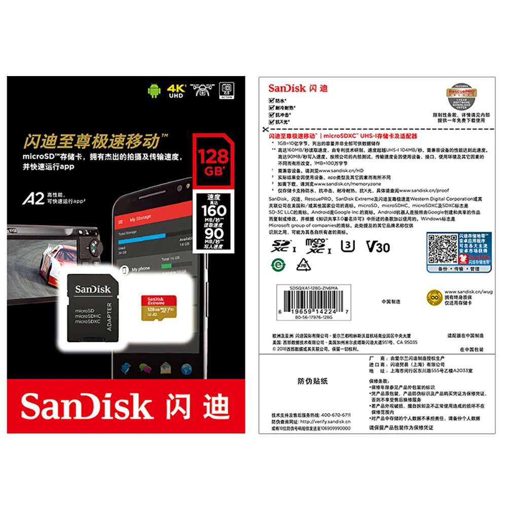 Карта памяти Microsd SanDisk A1 A2, 128256400512UHS-I ГБ, V30, U3, класс 10