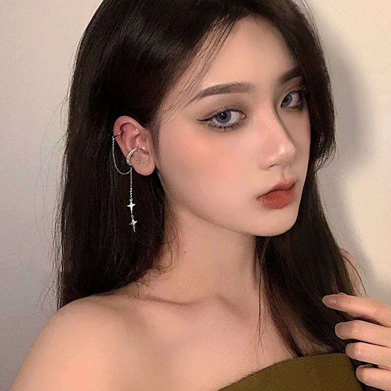 Серьги-клипсы женские, блестящие, с одной стороны, без пирсинга, 2021