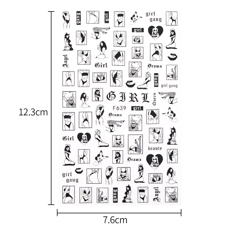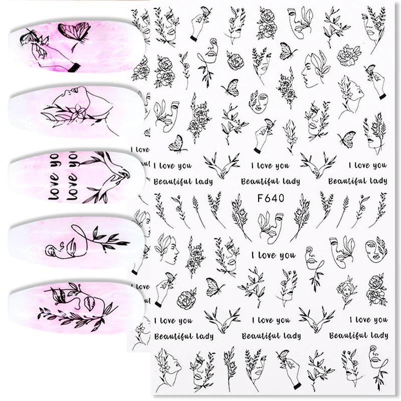 1 шт. Сексуальная леди в форме 3D наклейки для ногтей персонаж изображение лица листья цветочные наклейки слайдер черный, белый цвет DIY дизайн ногтей Decorarion 3D сексуальные наклейки для ногтей 3D сексуальные наклей