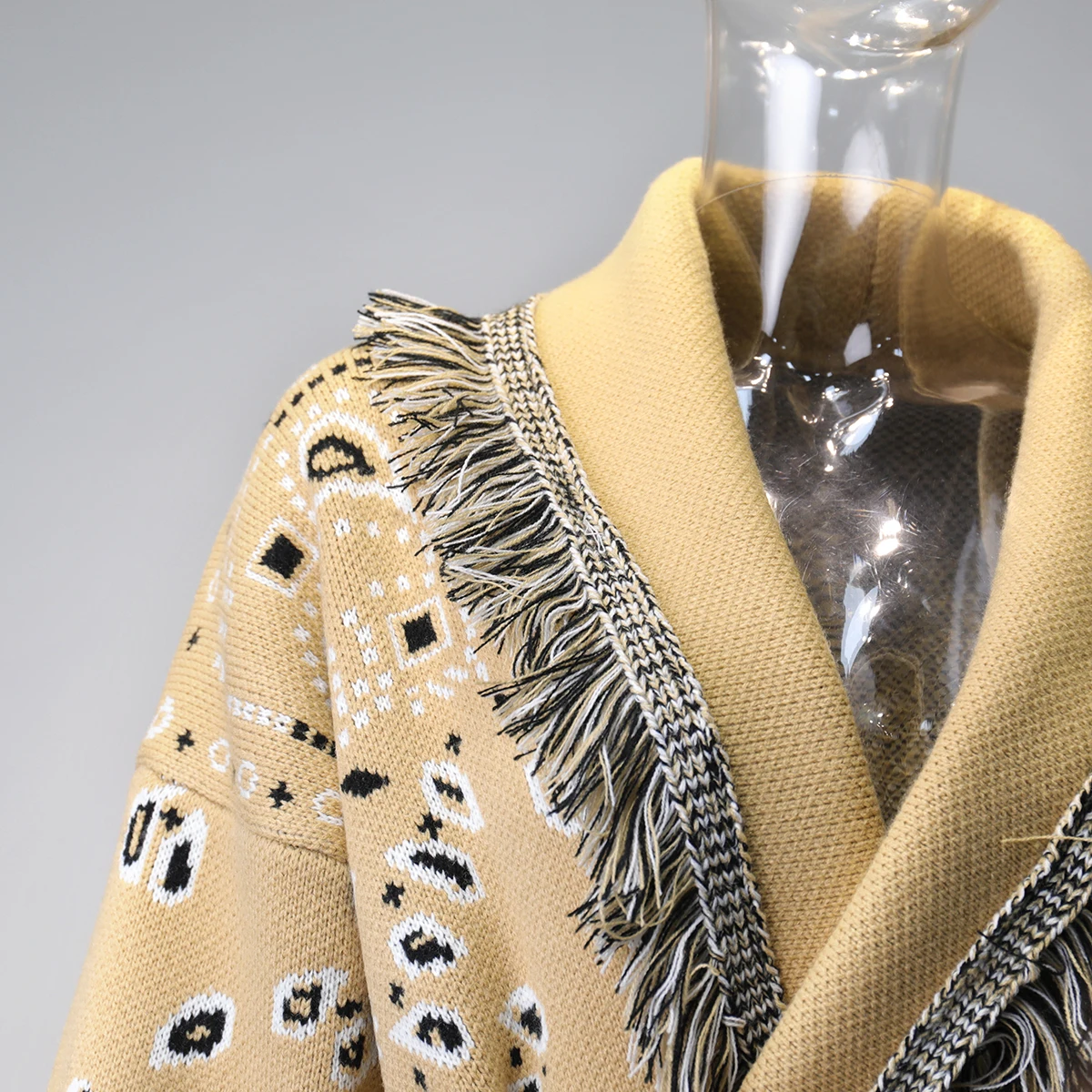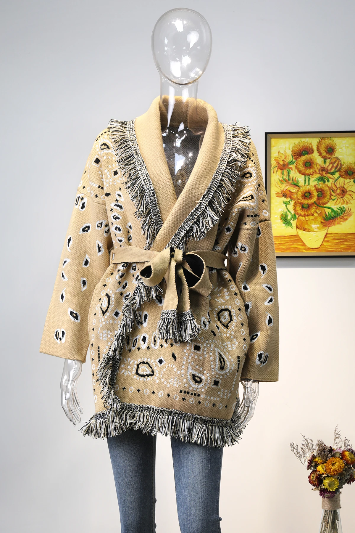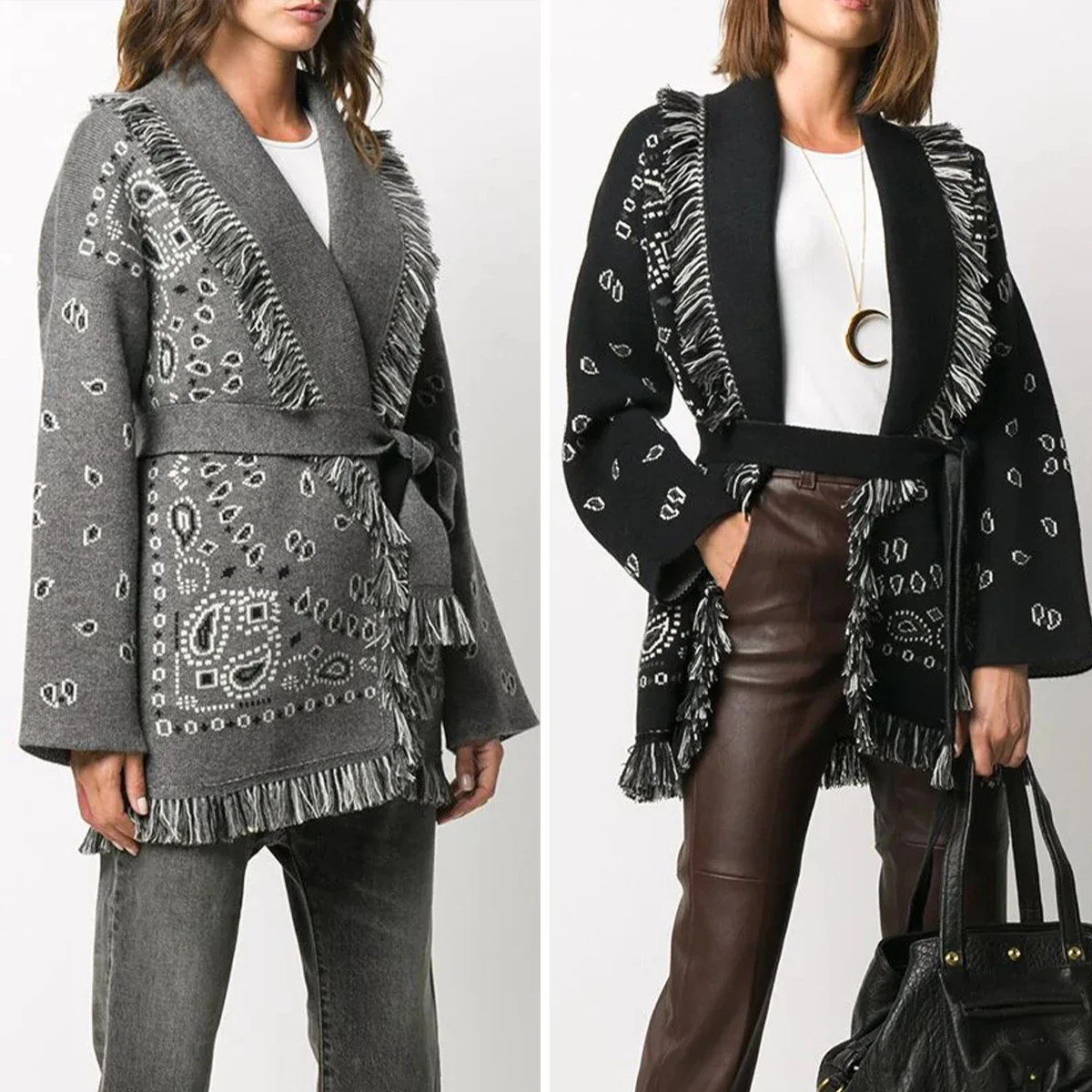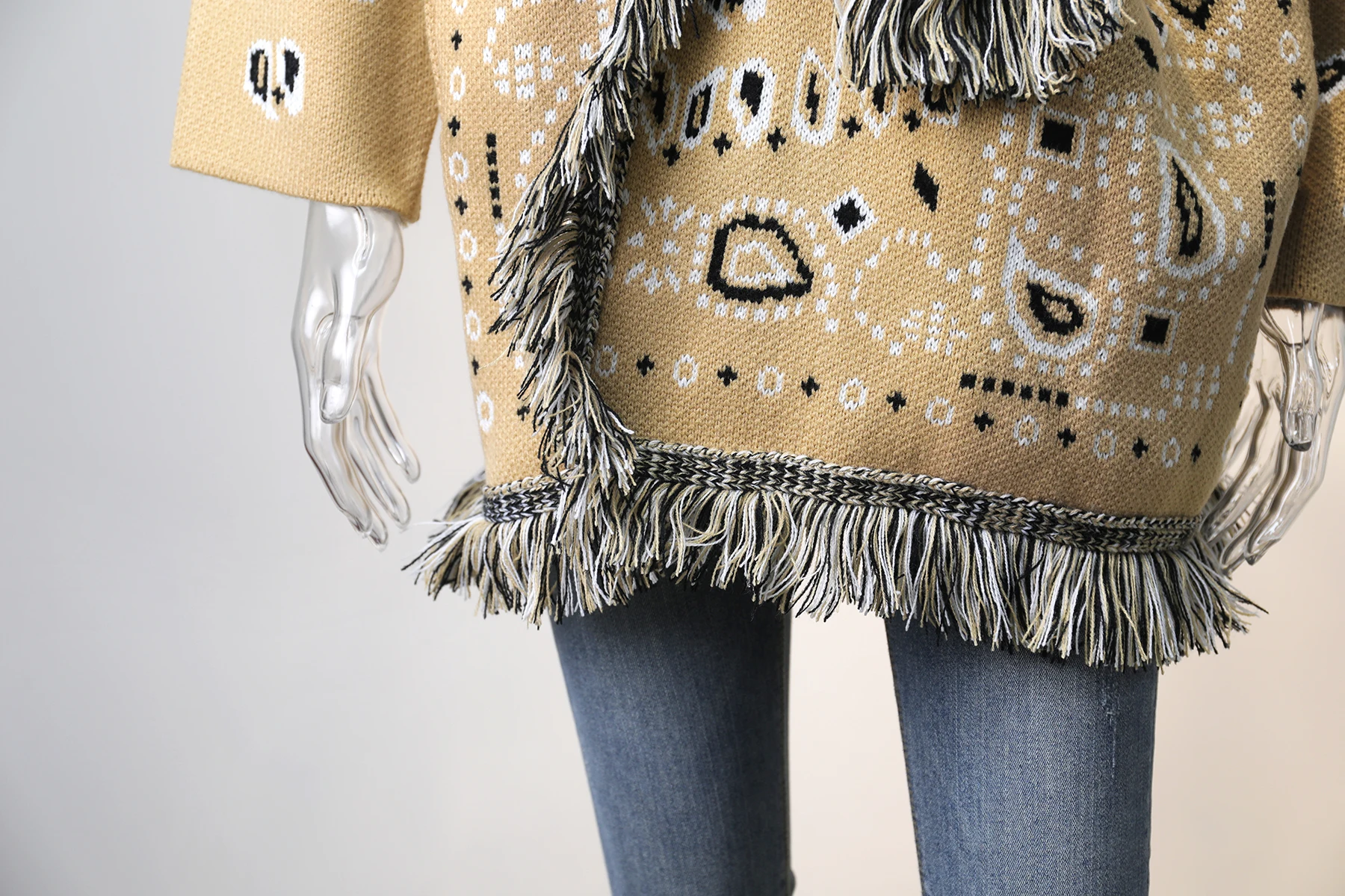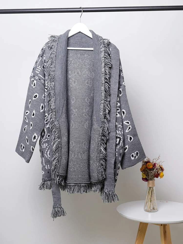 Женский кашемировый кардиган Jastie, кардиган в богемном стиле, осенне-зимний свитер с кисточками и отворотом, длинный рукав, пальто