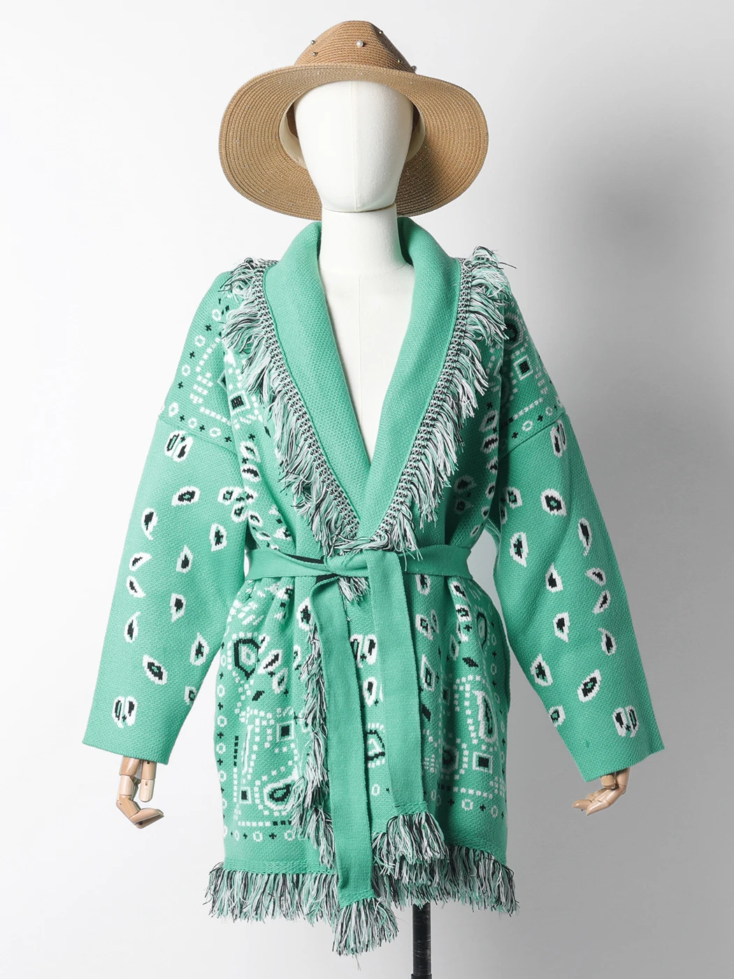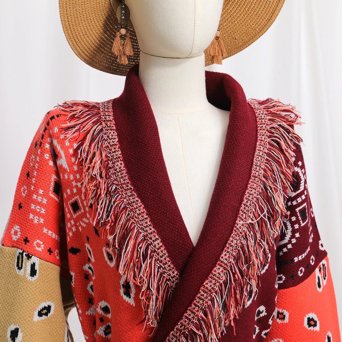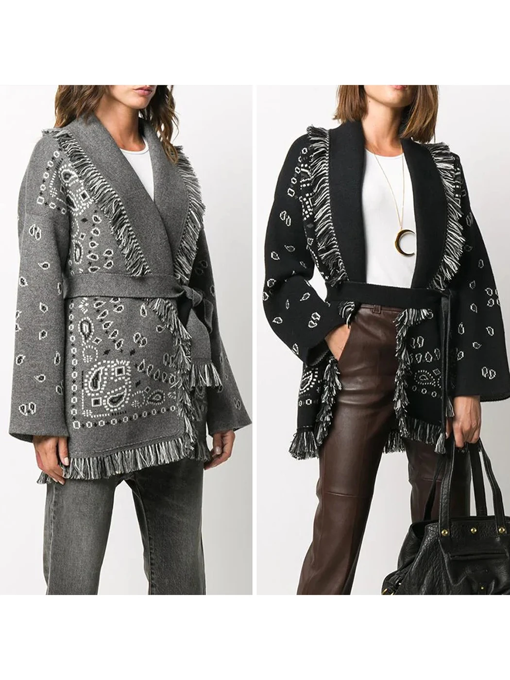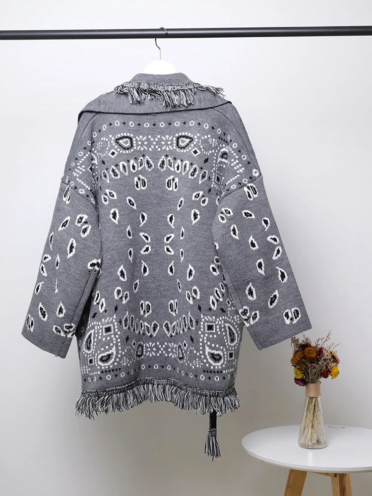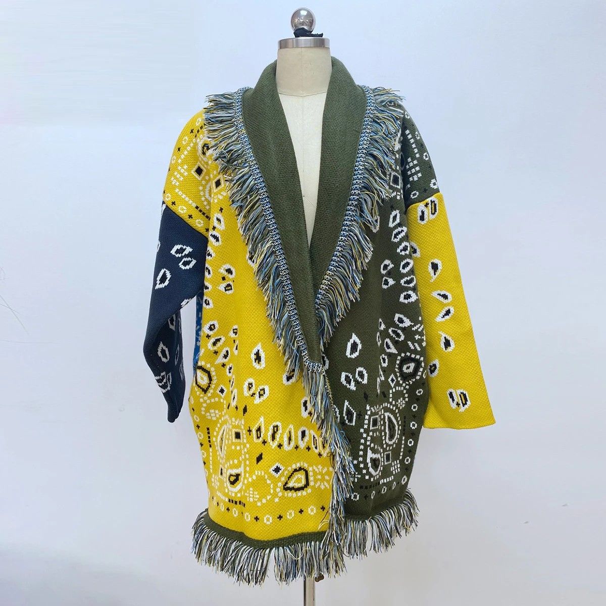 Женский кашемировый кардиган Jastie, кардиган в богемном стиле, осенне-зимний свитер с кисточками и отворотом, длинный рукав, пальто
