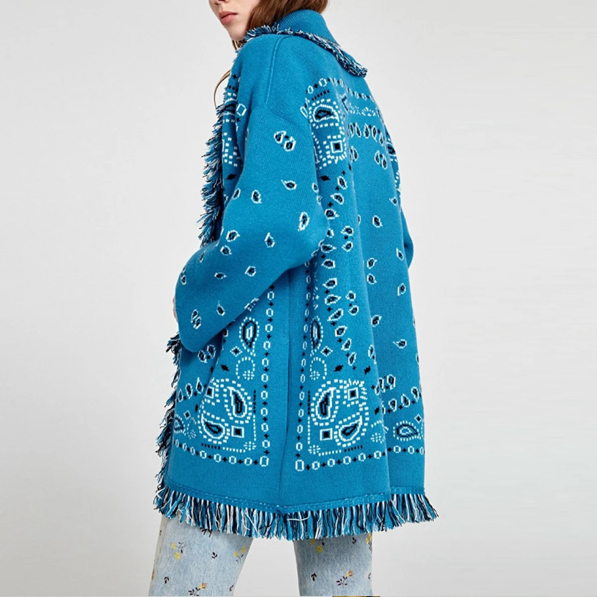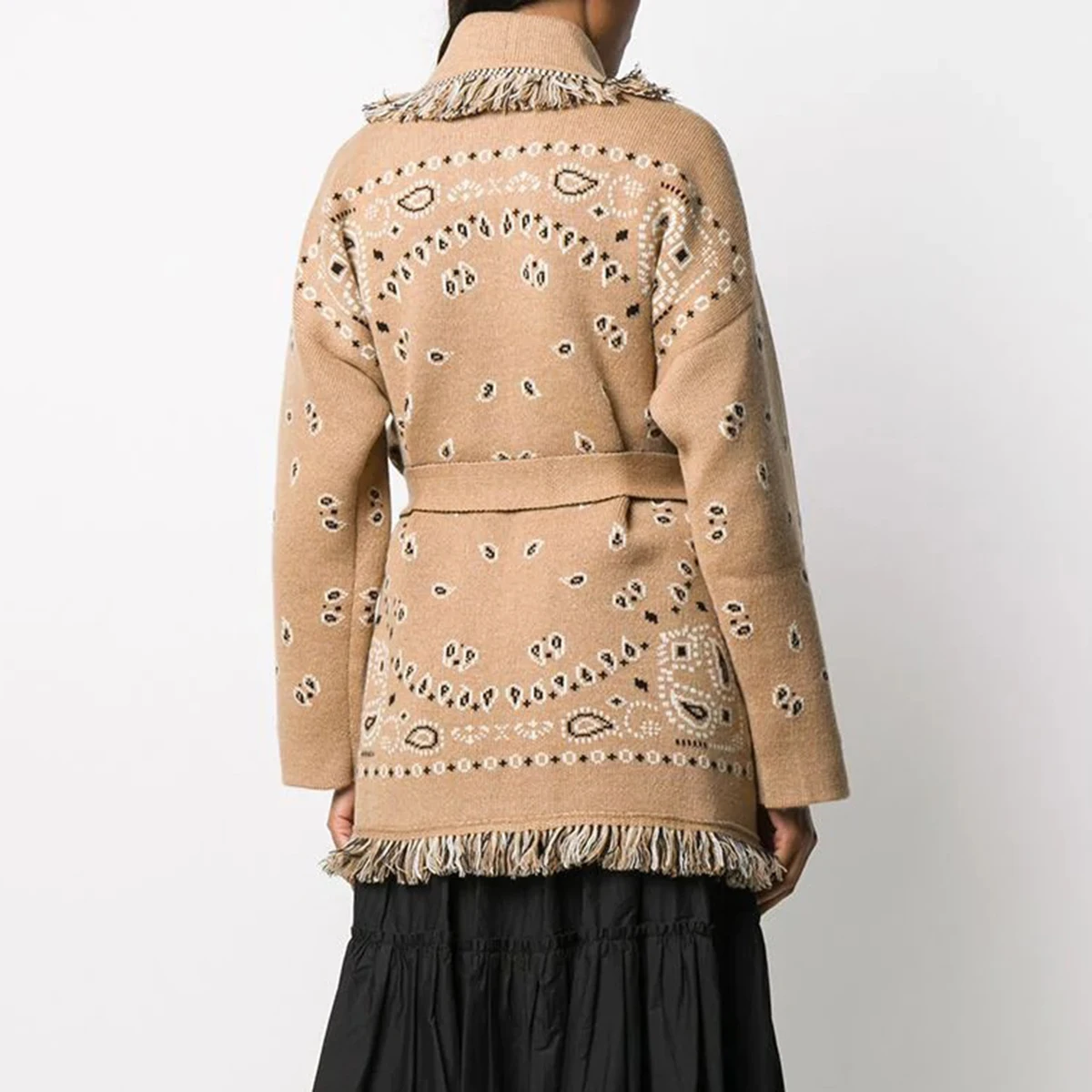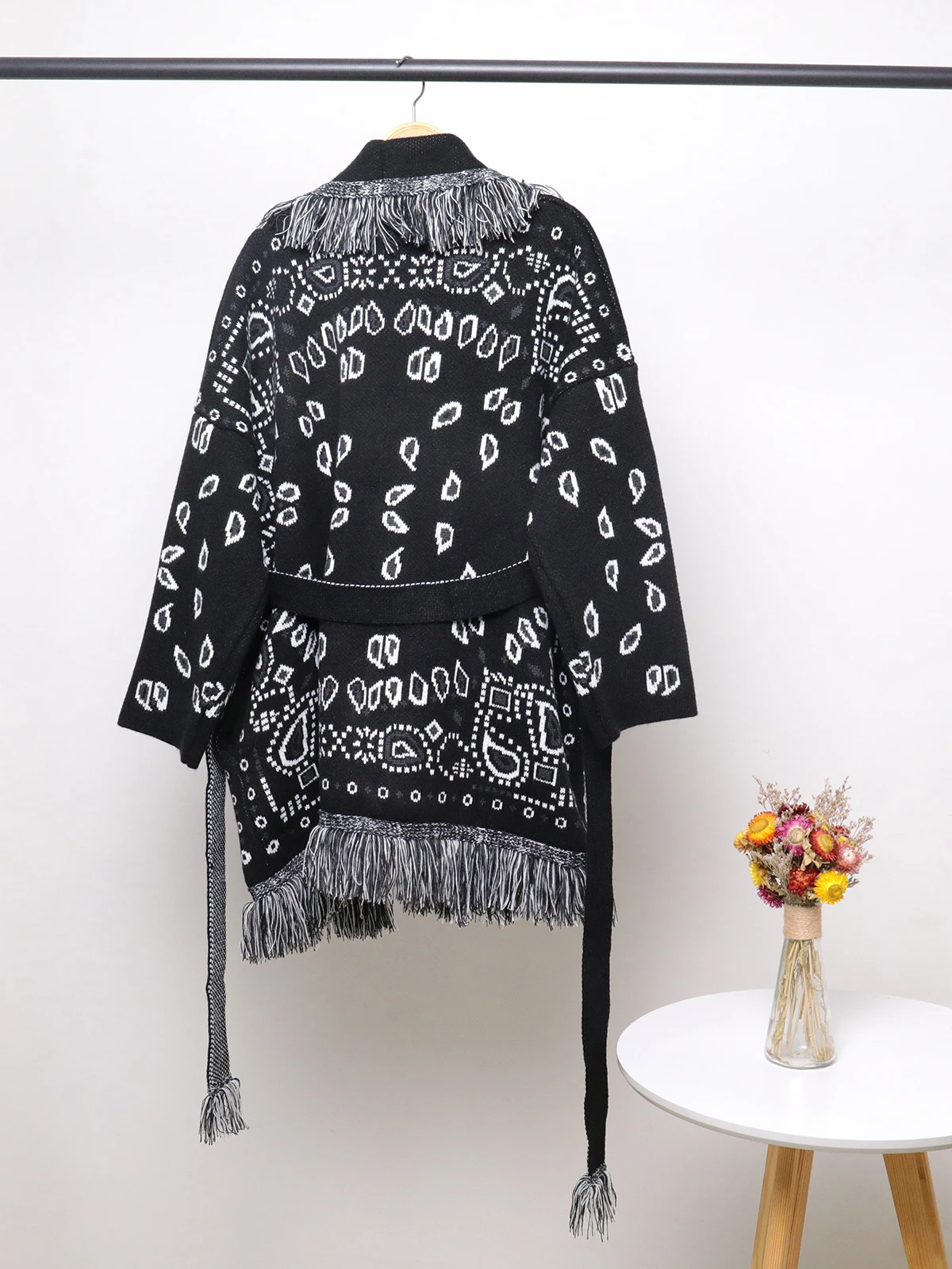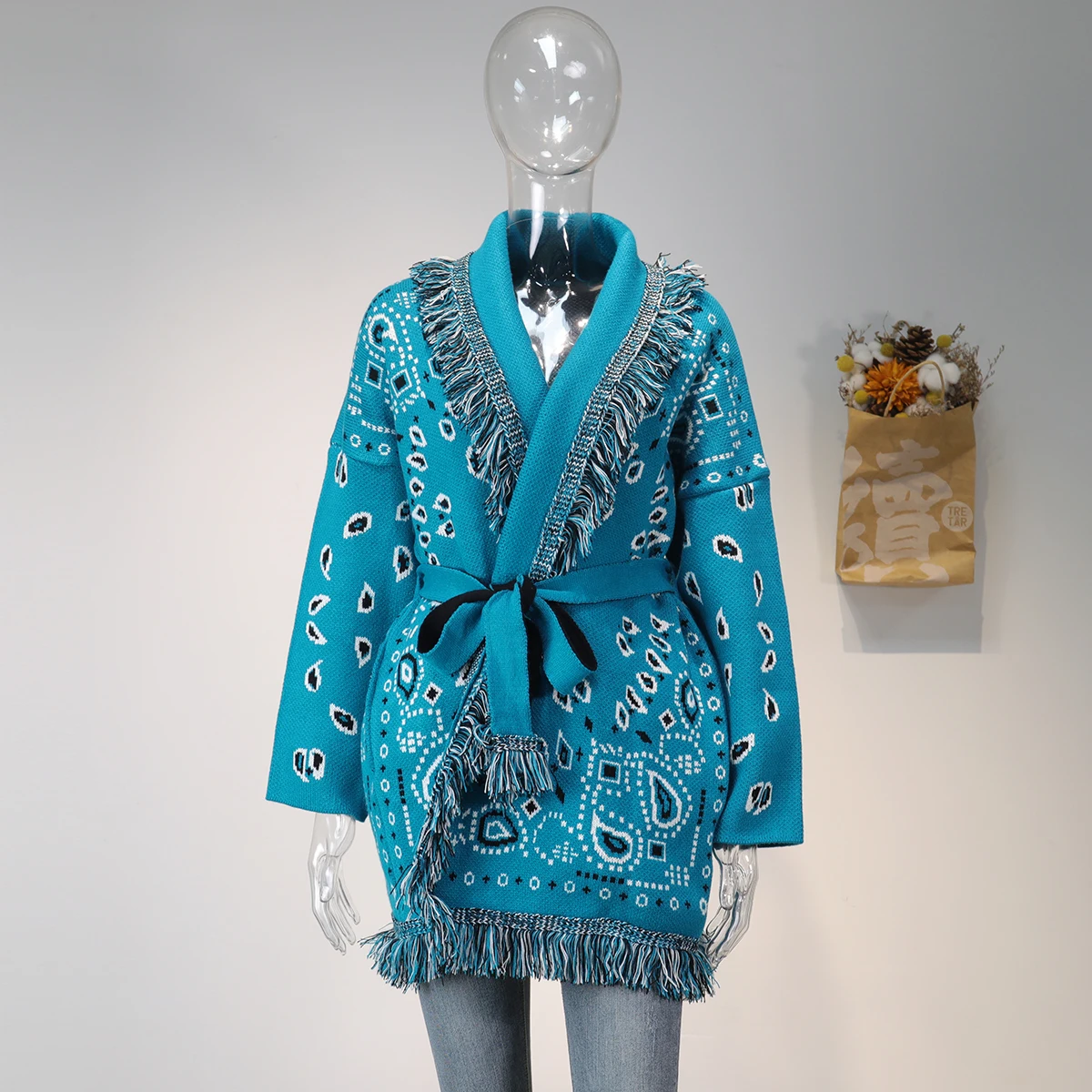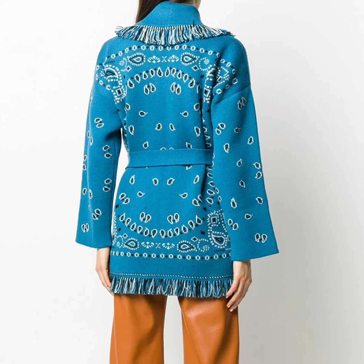 Женский кашемировый кардиган Jastie, кардиган в богемном стиле, осенне-зимний свитер с кисточками и отворотом, длинный рукав, пальто