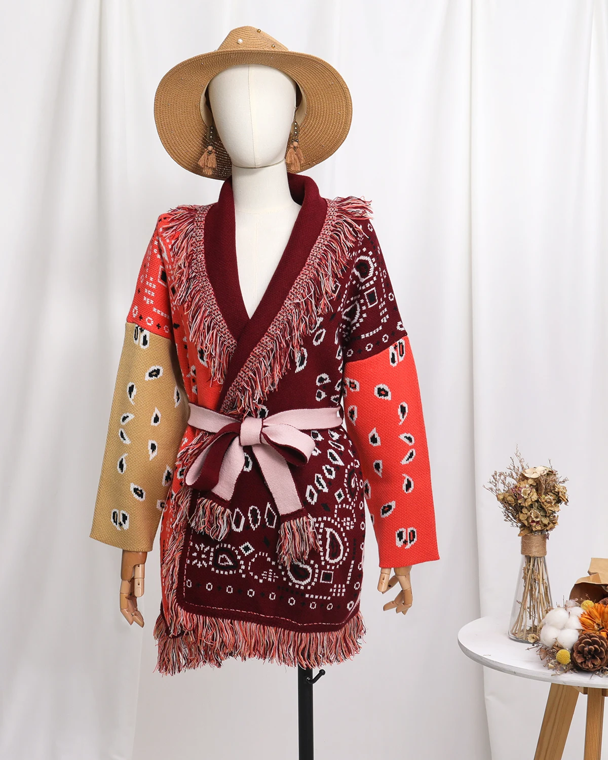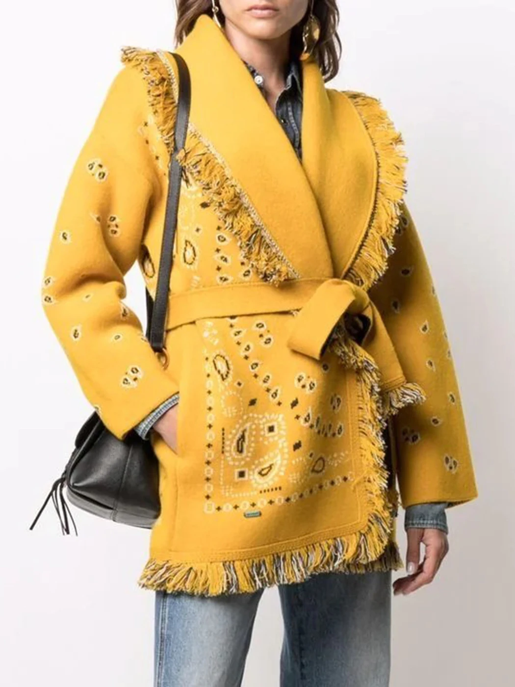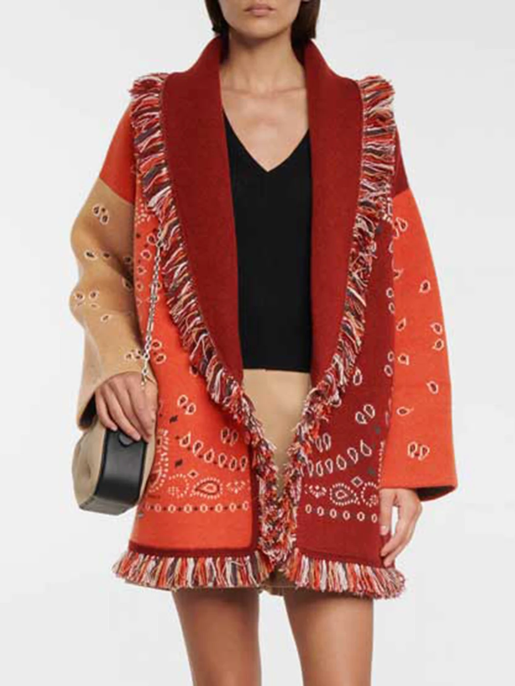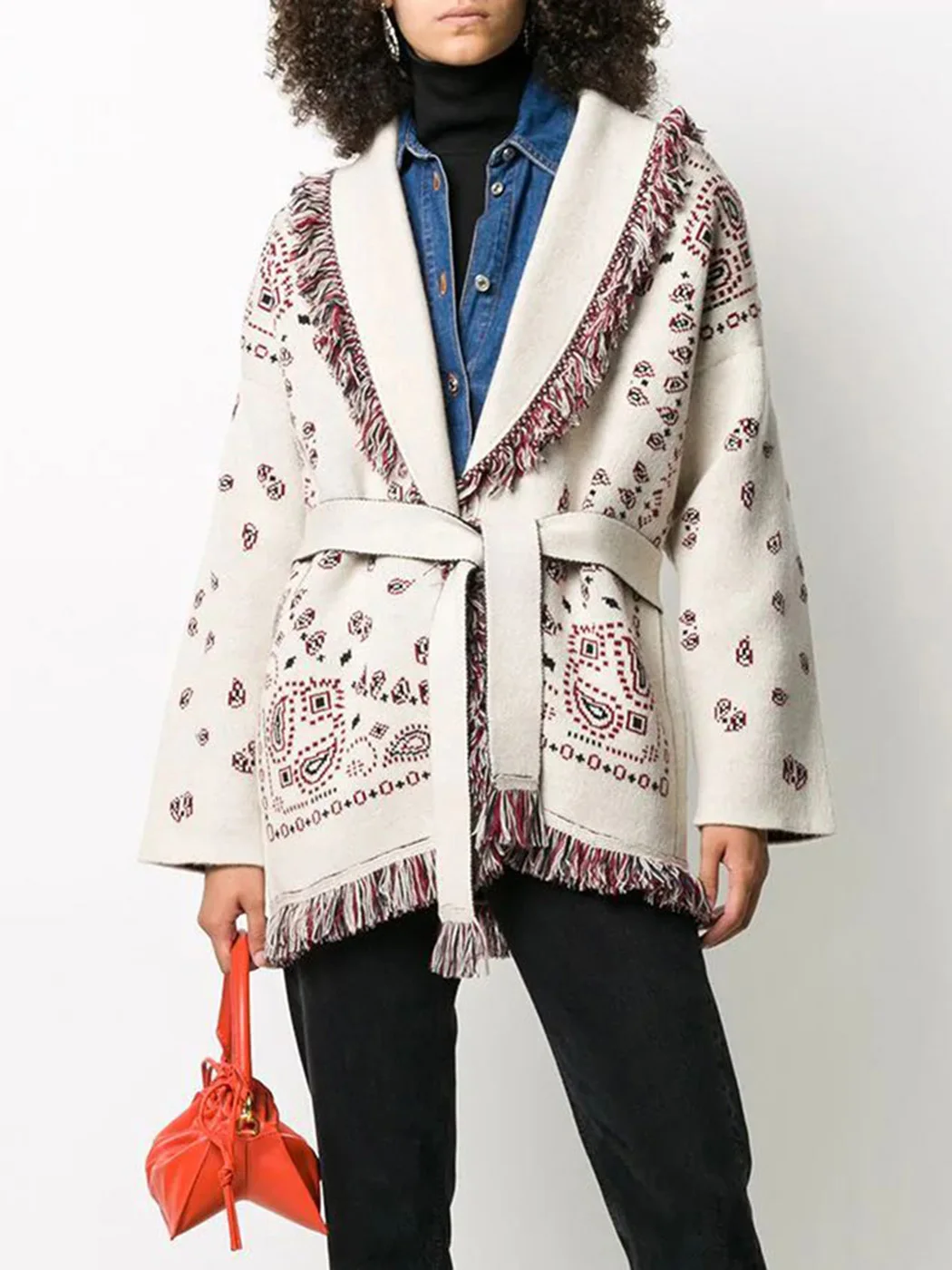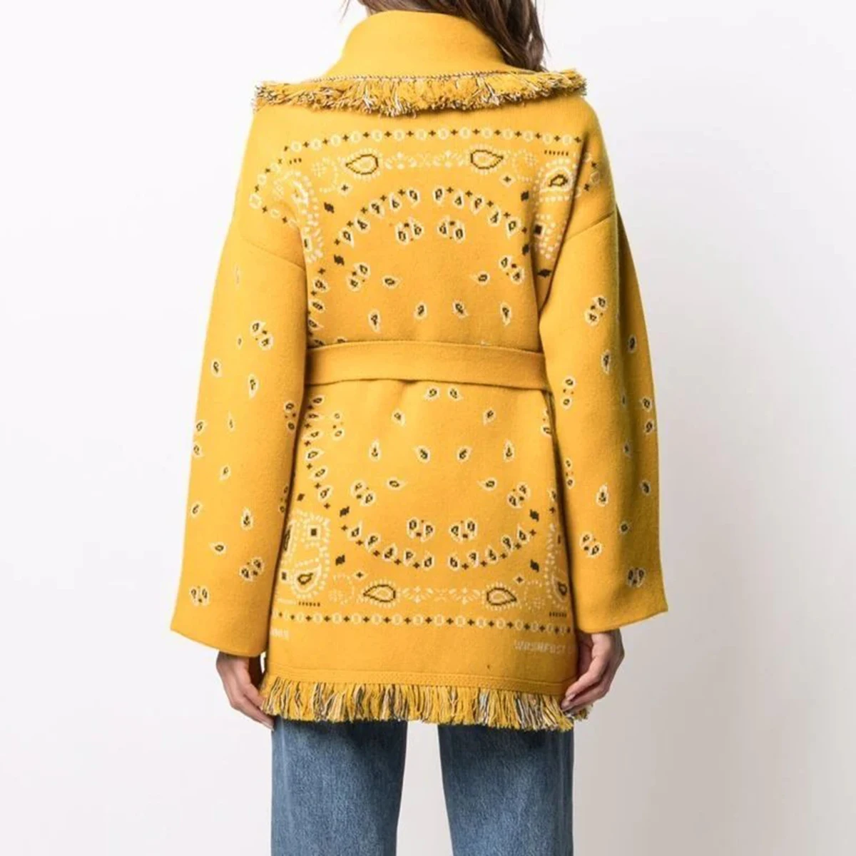 Женский кашемировый кардиган Jastie, кардиган в богемном стиле, осенне-зимний свитер с кисточками и отворотом, длинный рукав, пальто