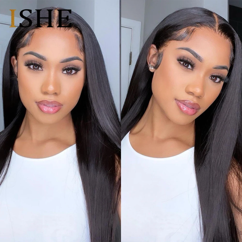 Парики из человеческих волос на сетке, прозрачные прямые передние парики 13x 6, бразильские, без клея, с предварительно выщипанным передним слоем, с застежкой 4x4, Remy