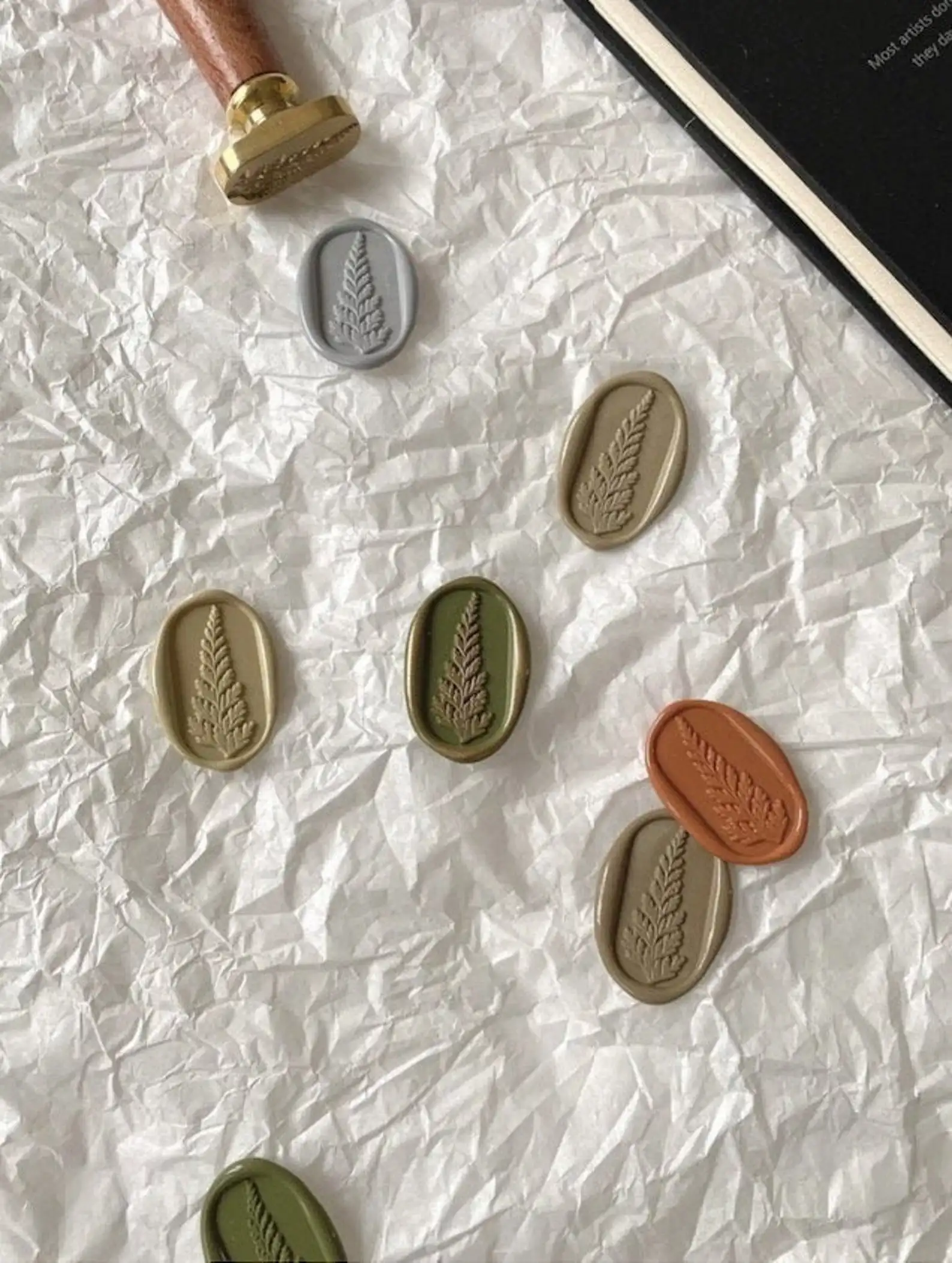 Восковая печать для папоротника, восковая печать для папоротника, декоративная восковая печать для журнала, латунная печать для журнала, печать для конверта