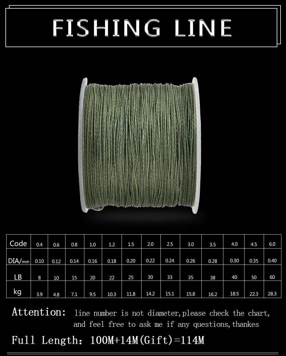 Мультифиламентная рыболовная плетеная леска, 114 м, 0,4 #-6,0 #, 8-...