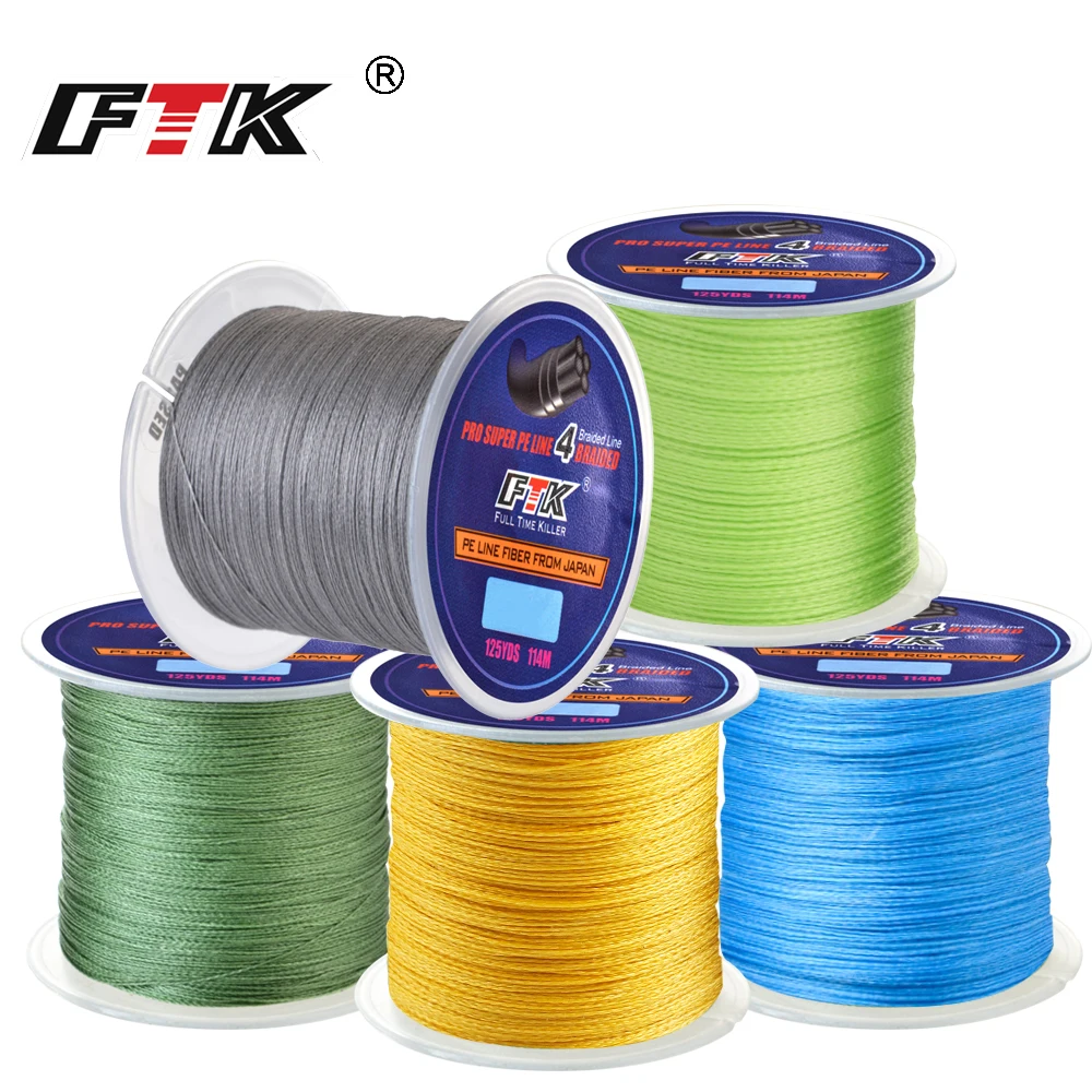 Плетеная рыболовная леска FTK 114 м 125 ярдов 4 нити PE 8 10 20 30 ...