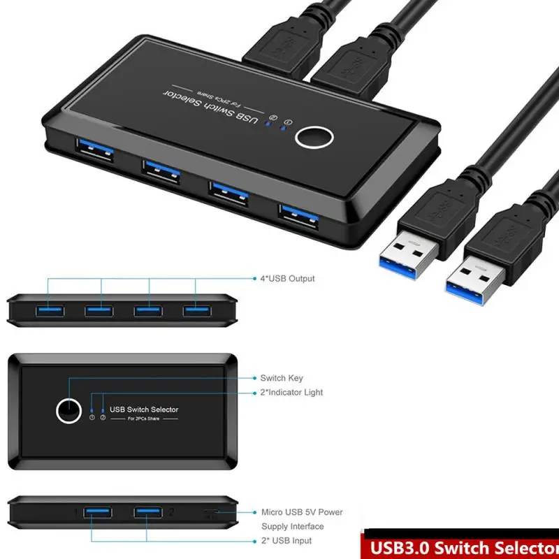 -KVM-переключатель USB 3,0/2,0 2-к-4-отличный выбор для совместного использования 4 USB-устройств между двумя системами.