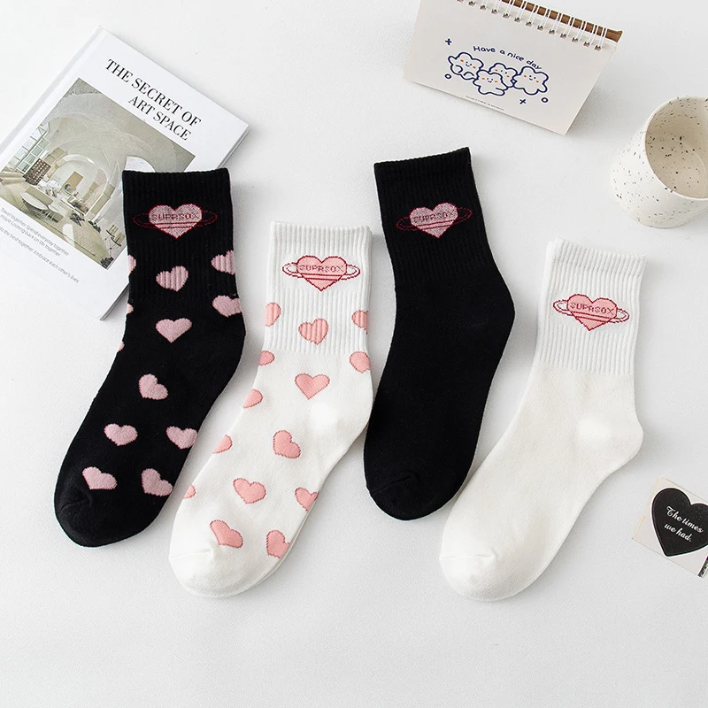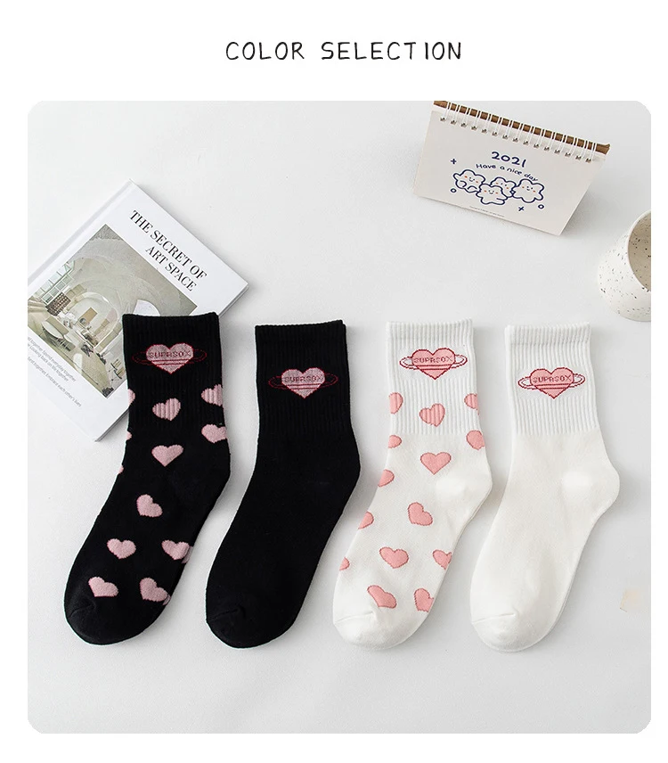 Симпатичные носки с принтом love kawaii slouch socken женский белый Харадзюку женские носки из хлопка в Корейском стиле женские носки