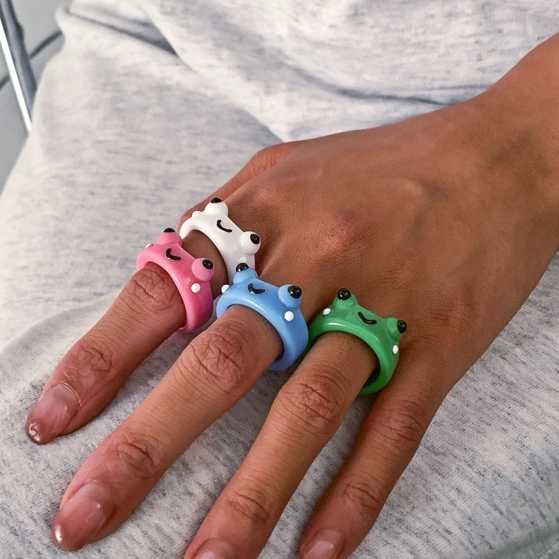 Акриловое кольцо в виде лягушки, кольца из полимерной смолы для жен...