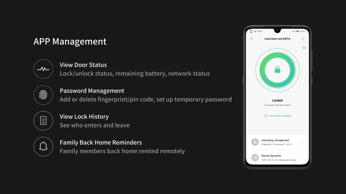 Поддержка разблокировки карты NFC, если вы случайно потеряете карту, не забудьте удалить ее информацию, поэтому она не будет использоваться для разблокировки.