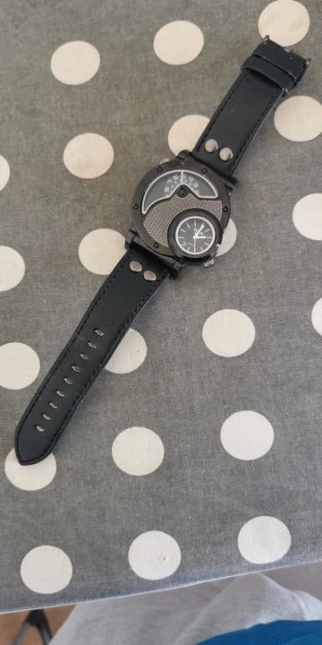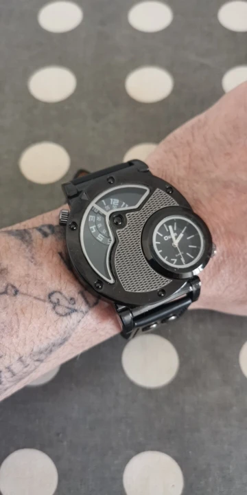 Часы наручные Oulm Мужские кварцевые, модные креативные брендовые Роскошные спортивные в стиле милитари, с двумя часовыми поясами и кожаным ремешком