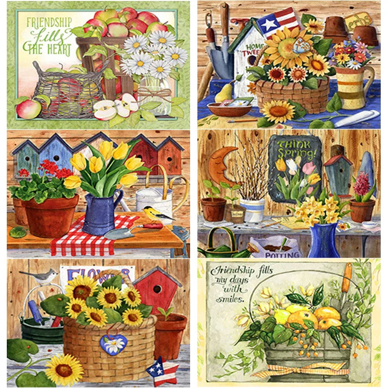 Алмазная картина 5D сделай сам, картина с цветочной корзиной, искусственная вышивка крестиком, квадратная, круглая, для домашнего декора, ручной подарок