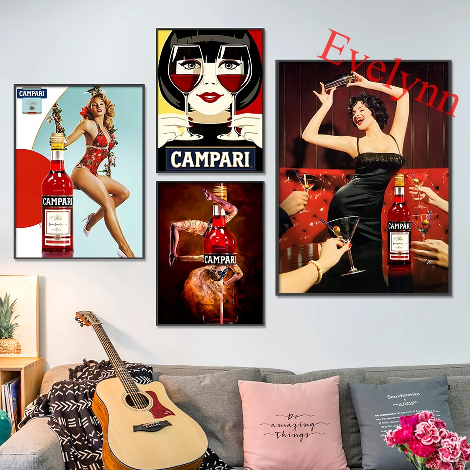Модный постер с надписью Campari sodawater, Постер для коктейлей, красное вино, алкоголь, домашний декор, художественный холст, уникальный подарок