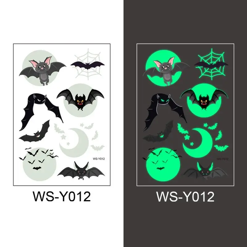 Временные татуировки на Хэллоуин, день дьявола, летучая мышь, водонепроницаемые флуоресцентные зеленые светящиеся татуировки, наклейки сделай сам на плечо, лицо, руку