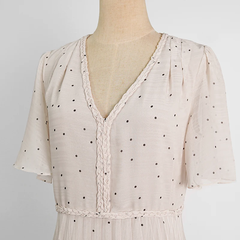 Женское длинное платье в черный горошек, элегантное белое платье средней длины в стиле ретро с V-образным вырезом и коротким рукавом, лето 2022