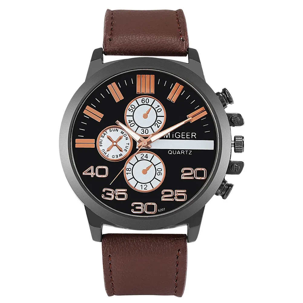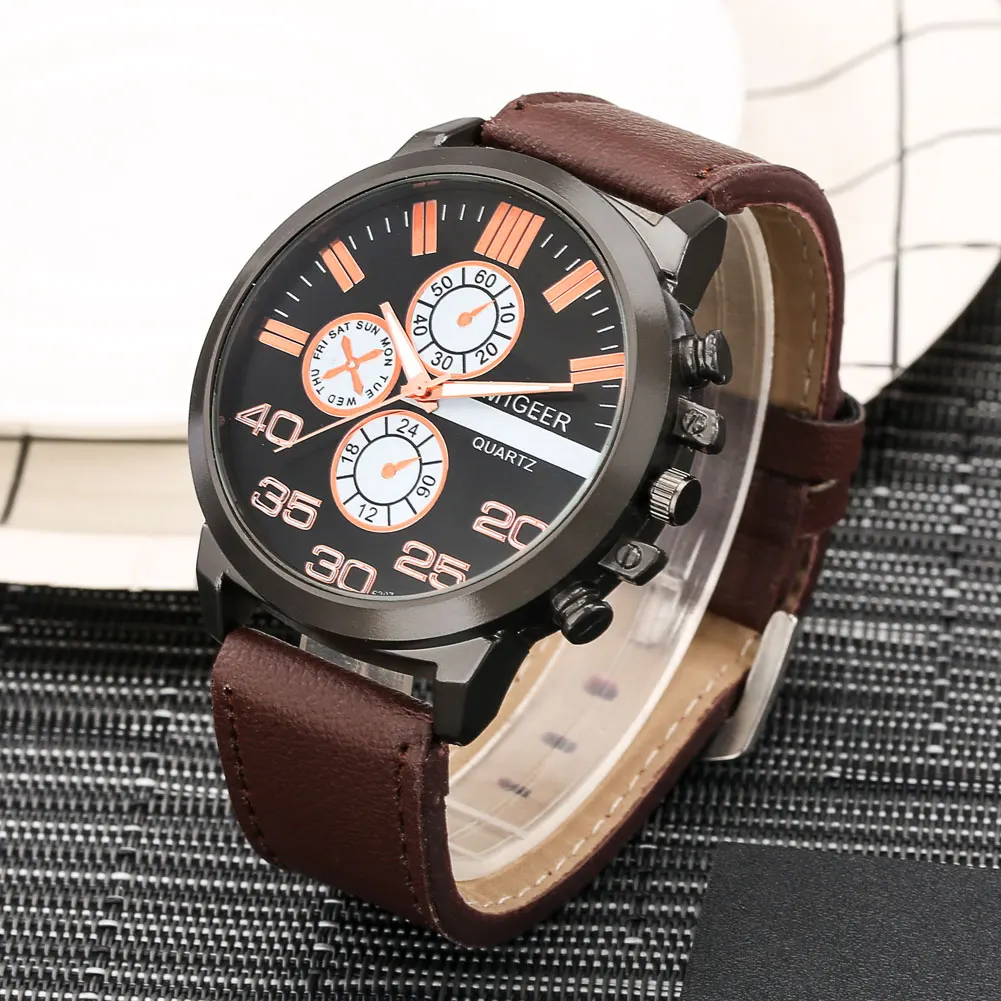 Спортивные мужские часы, роскошный кожаный ремешок, кварцевые часы,...