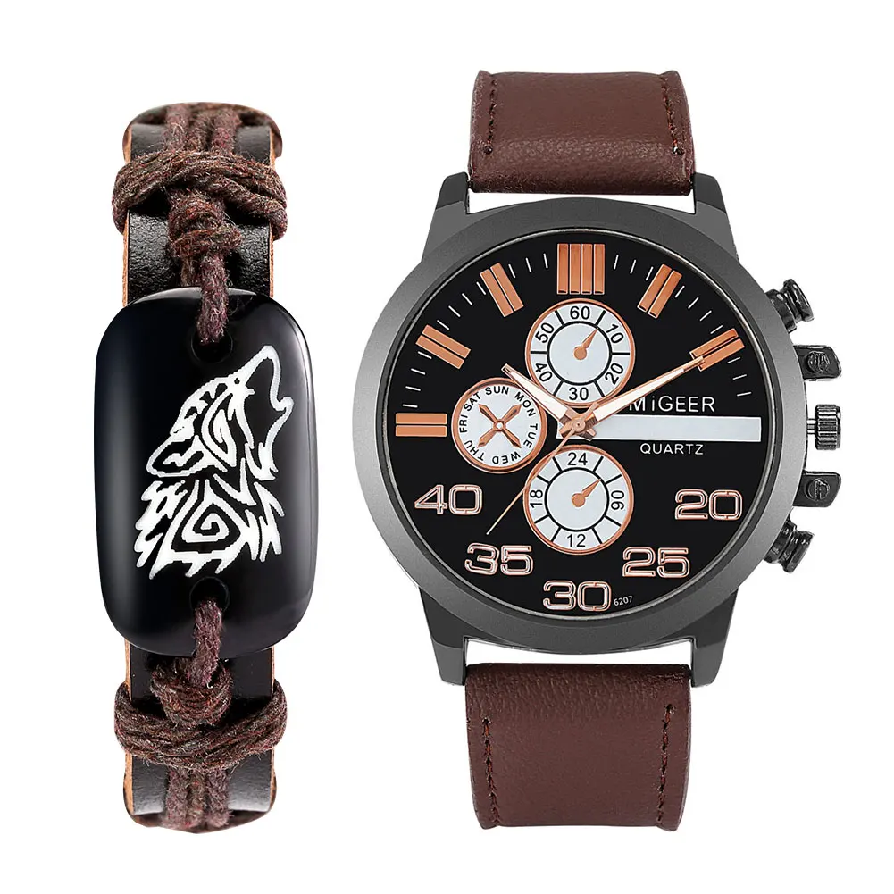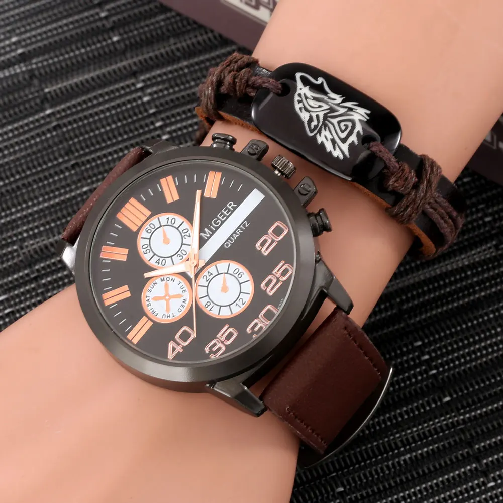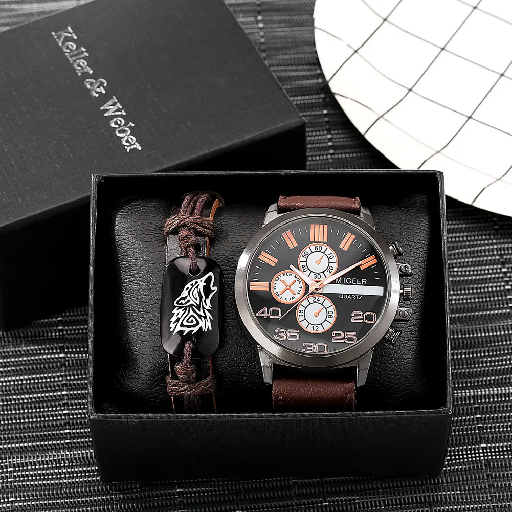 Новинка, набор кварцевых часов для мужчин 2021, коричневый браслет ...