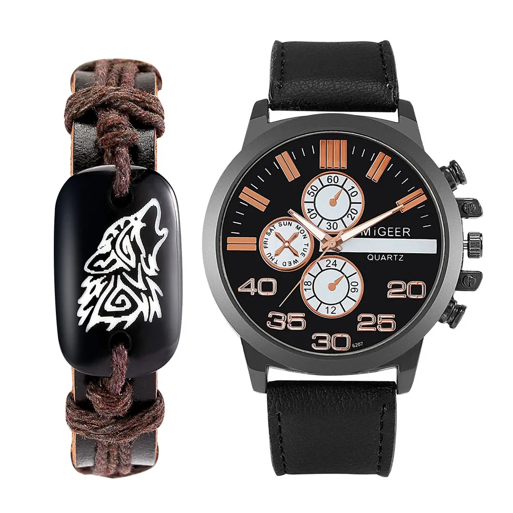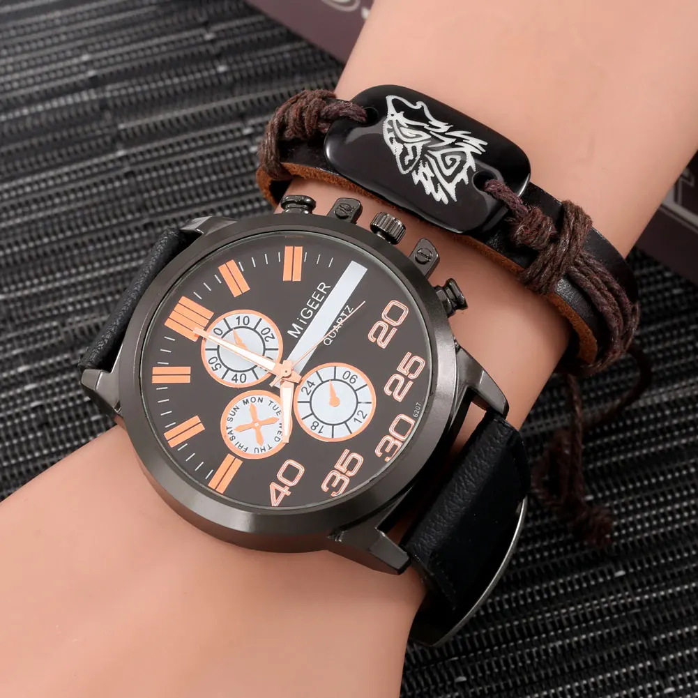 Часы мужские кварцевые с кожаным ремешком, Модный подарочный набор,...