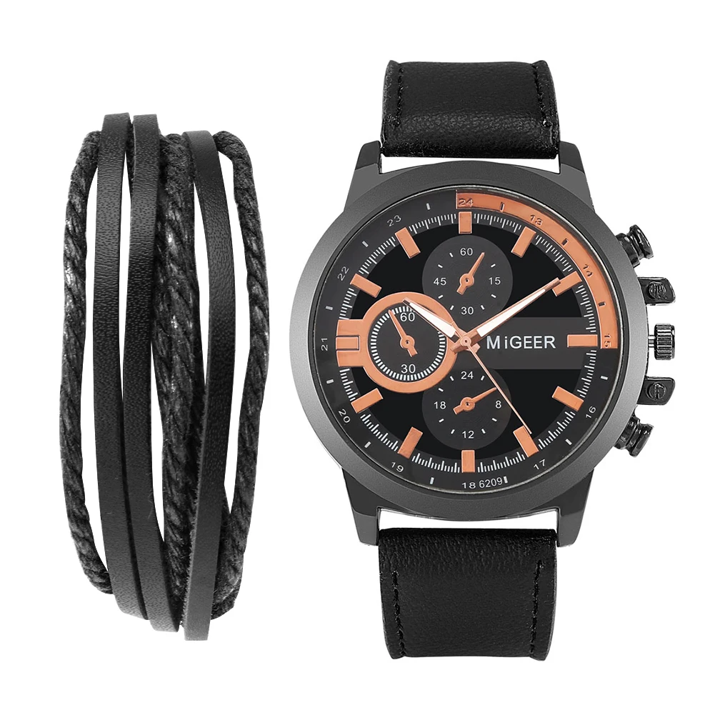 Набор модных мужских часов и браслетов, мужской черный выпуск из 3 ...