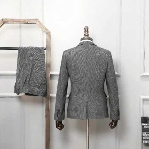 Мужской твидовый костюм-смокинг, серое двубортное свадебное платье для жениха, деловое платье для выпускного вечера, деловые костюмы для свадьбы