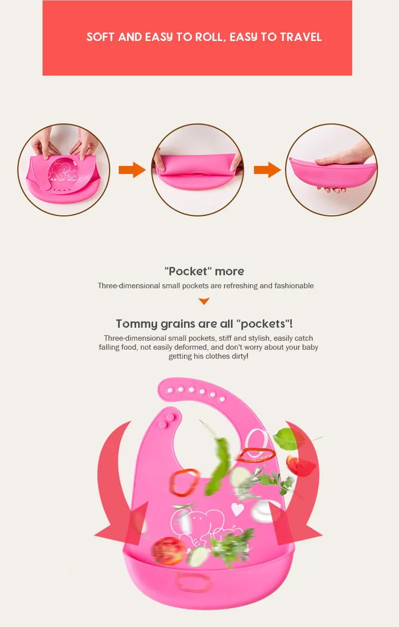 Мягкий силиконовый водонепроницаемый нагрудник с карманом для мальчиков и девочек