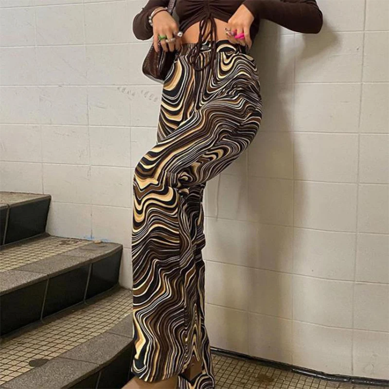 Женские длинные брюки, брюки-клеш с высокой талией и принтом в виде...