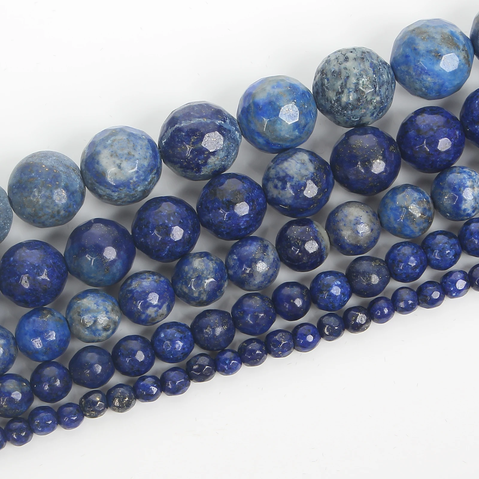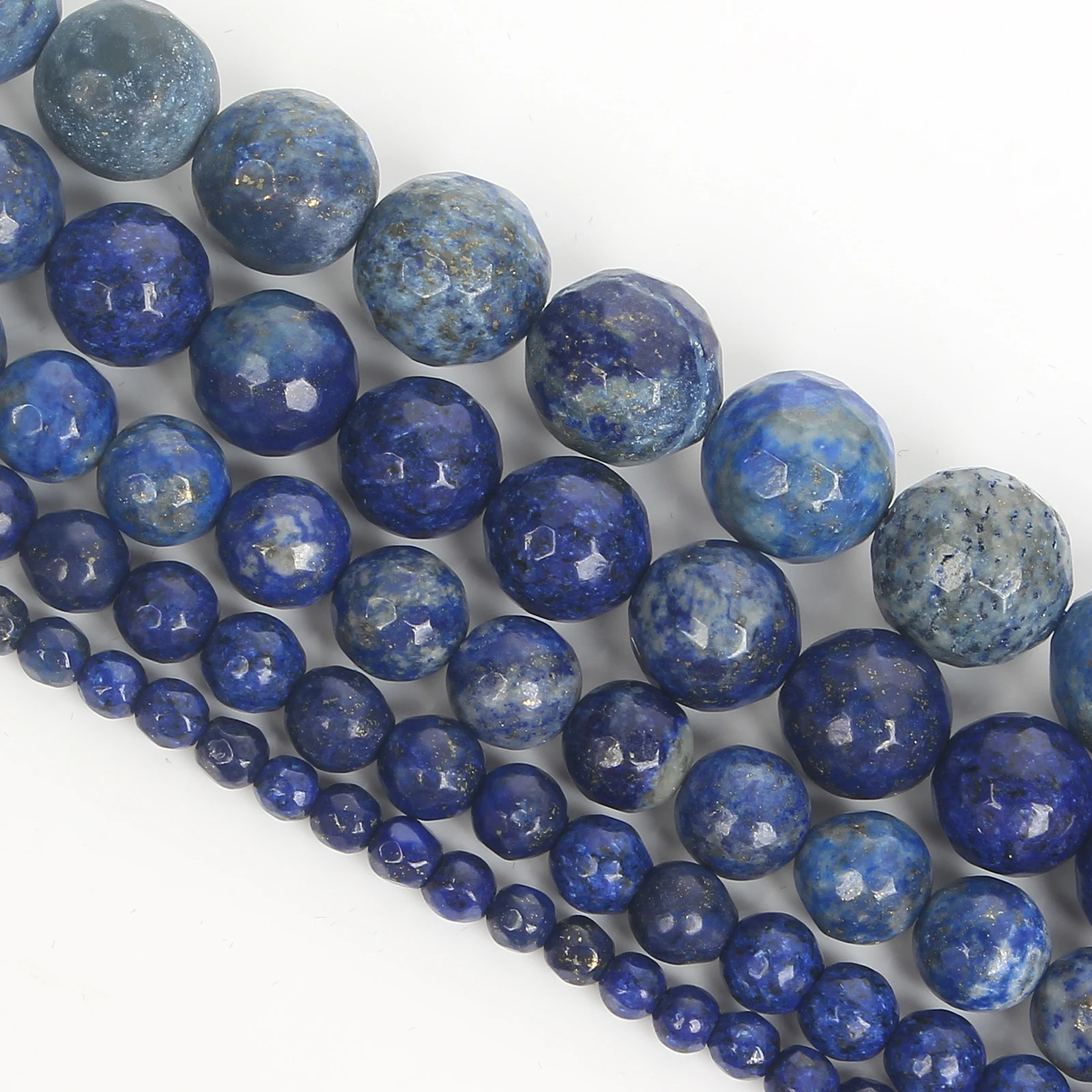 Бусины из натурального камня, граненые, лазурит, круглые бусины россыпью, бусины-разделители для женского ожерелья, аксессуары сделай сам 4-12 мм