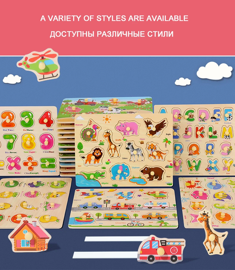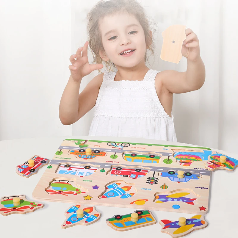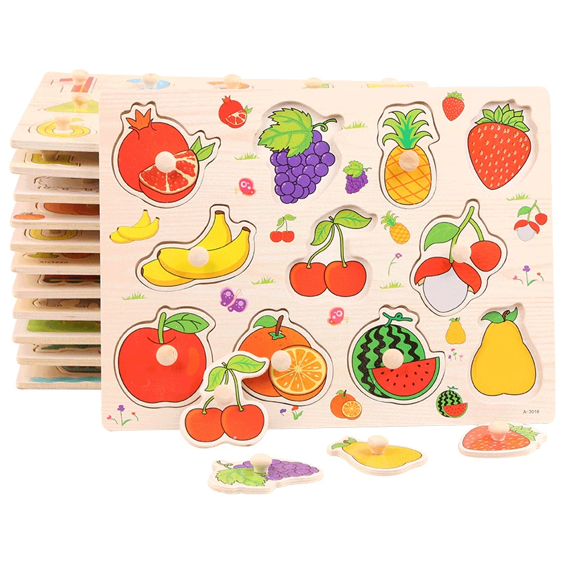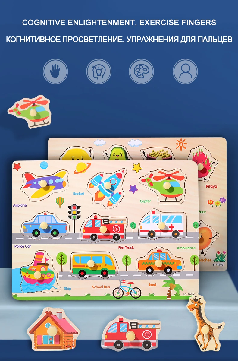 Мультяшный автомобиль, животные, фрукты, 3D головоломки Монтессори, деревянные головоломки, ручные захваты, игрушки, танграмма, головоломки для детей, развивающие игрушки WYW