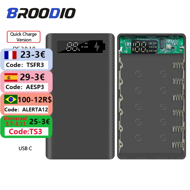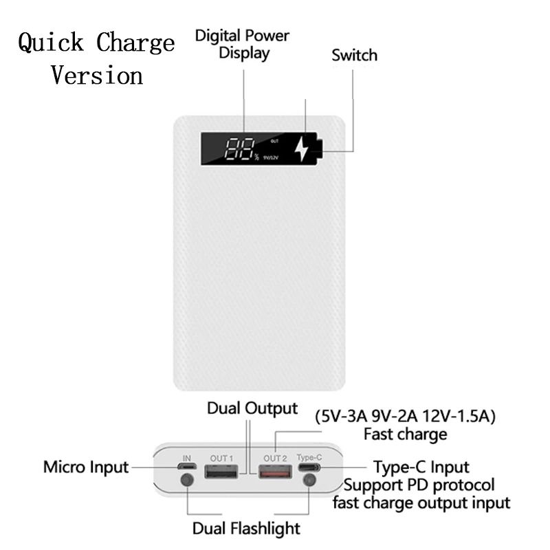 Быстрая зарядка, версия 6*18650, чехол с внешним аккумулятором с двумя USB-портами, зарядка QC 3,0 PD, сделай сам с цифровым дисплеем, зарядная коробка
