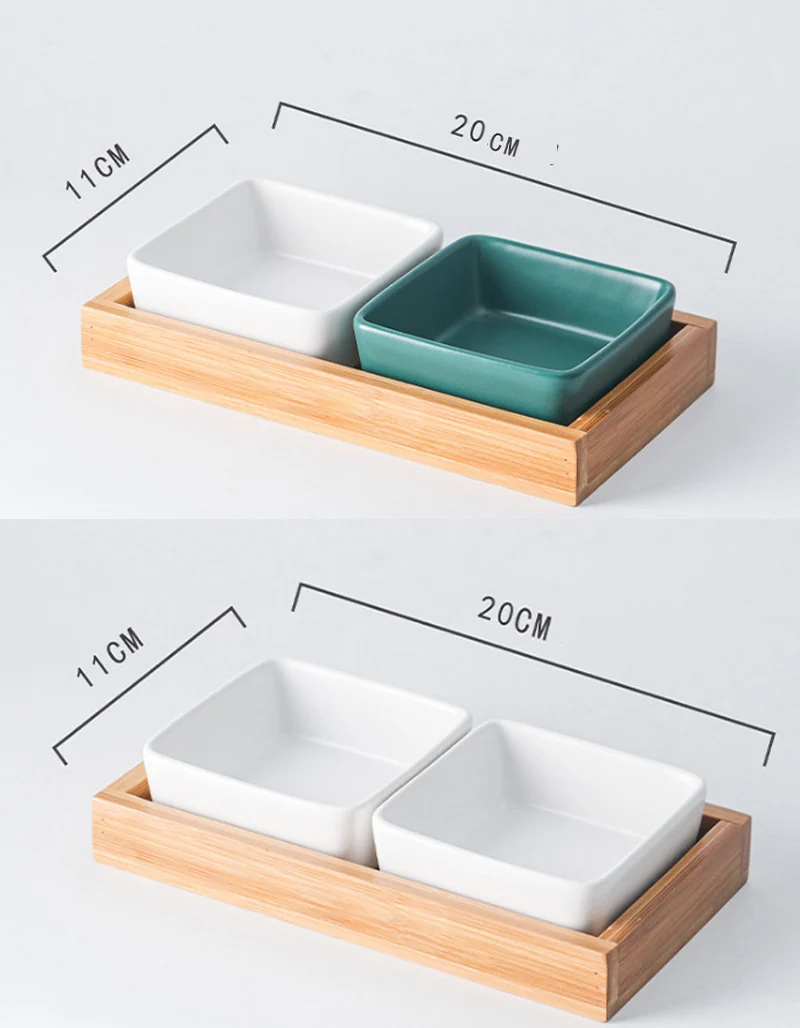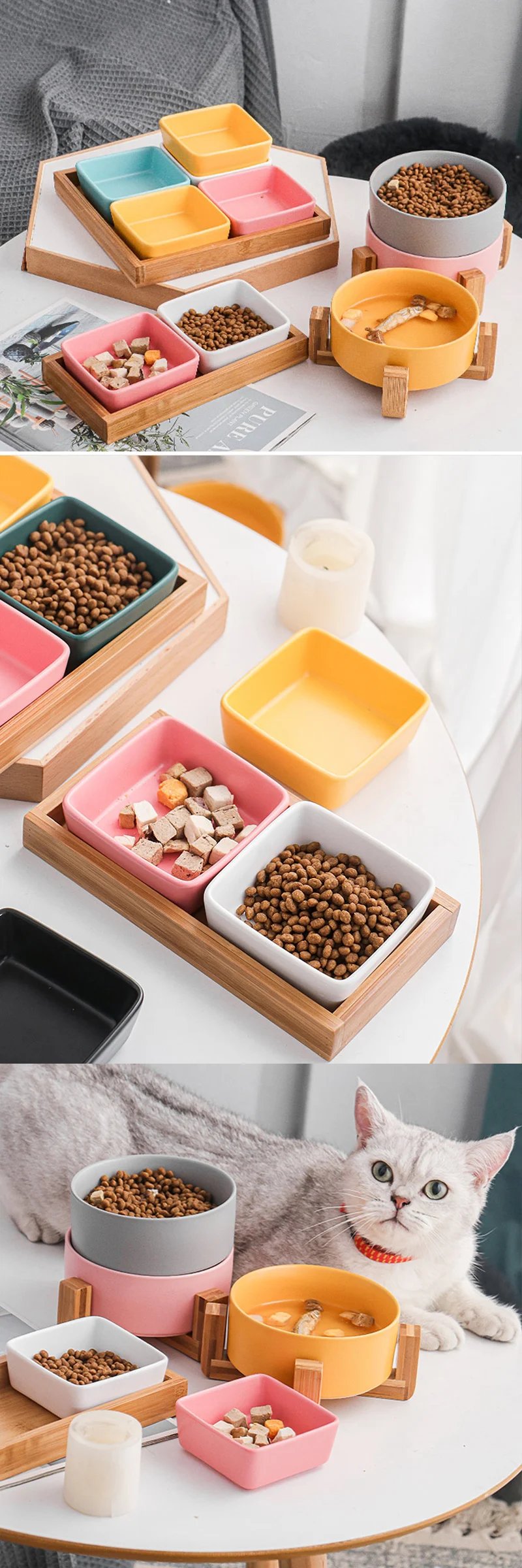 Товары для дома, керамика, искусственное блюдо с бамбуковой деревянной подставкой, без протекания, для домашних животных, для воды, кухонный держатель для соуса, закусок