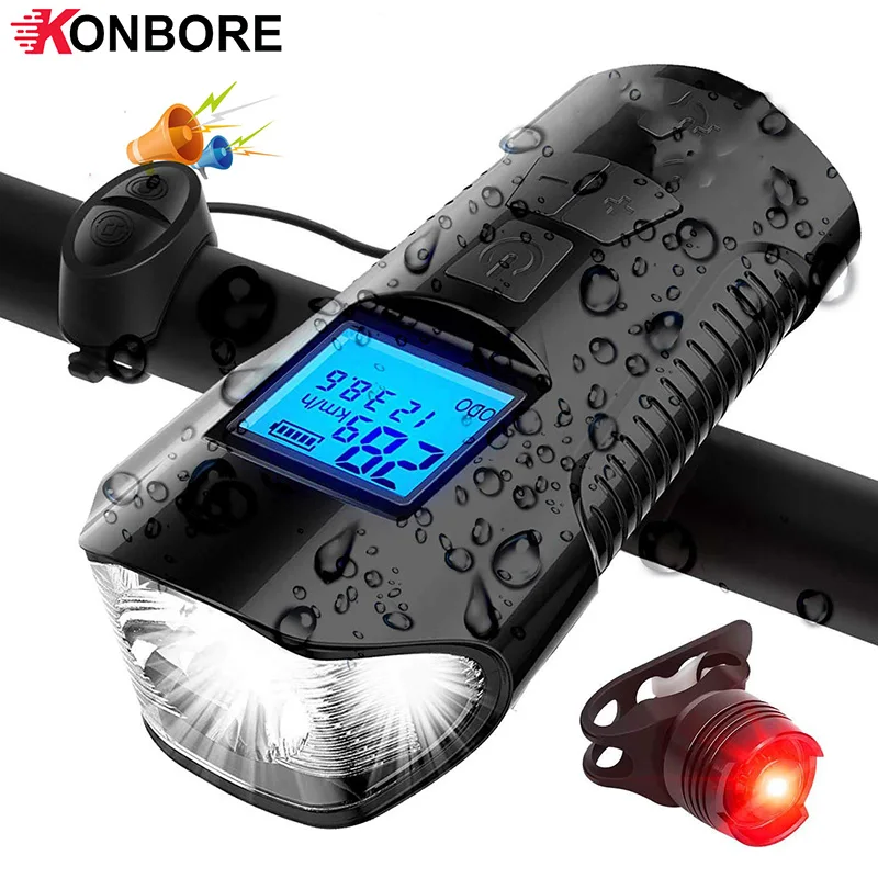 Велосипесветильник онарь, водонепроницаемый, USB, перезаряжаемый, с ЖК-дисплеем, 6 режимов