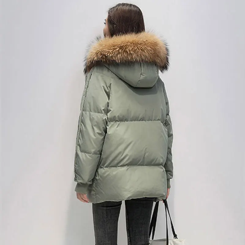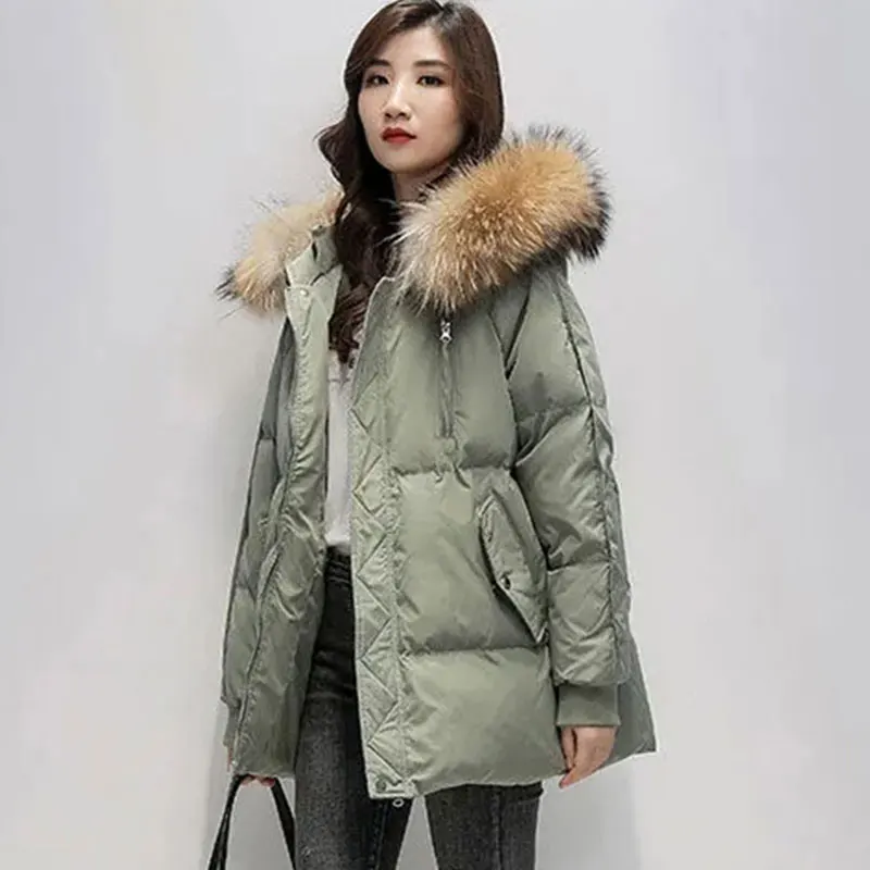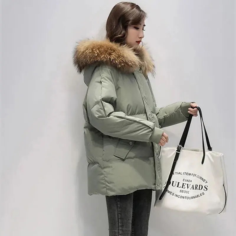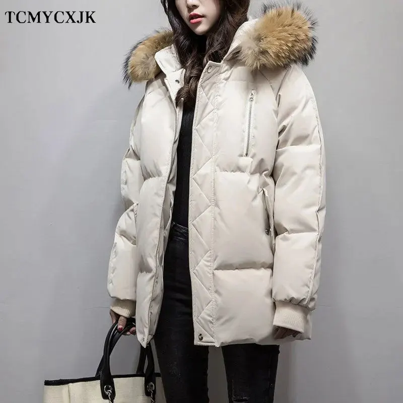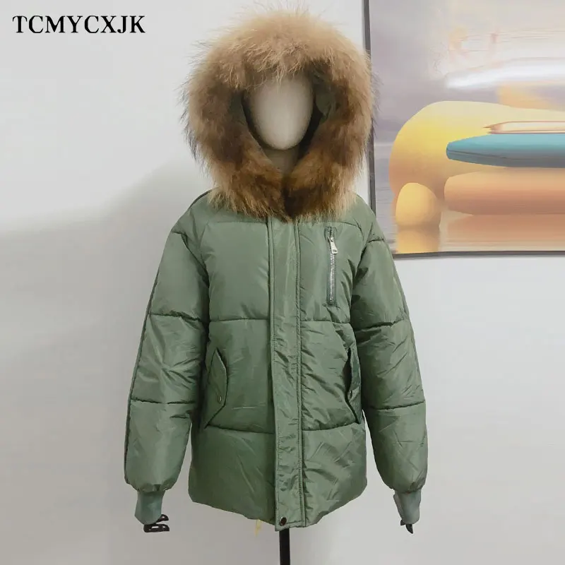 Новинка 2022, Женская парка с воротником из натурального меха енота, модная женская куртка с капюшоном, свободная Толстая Элегантная куртка в Корейском стиле