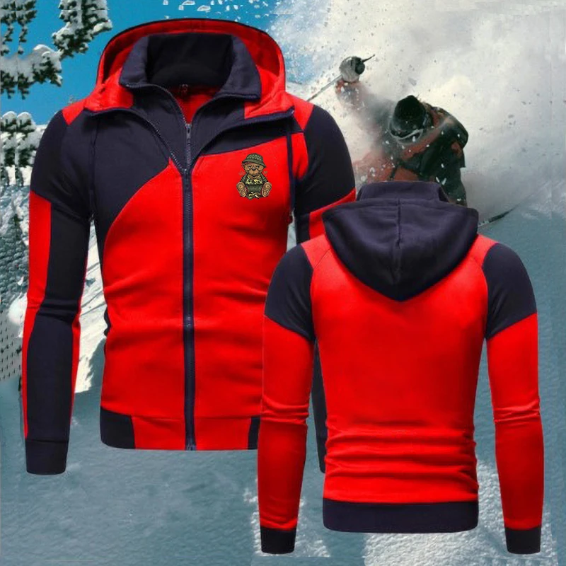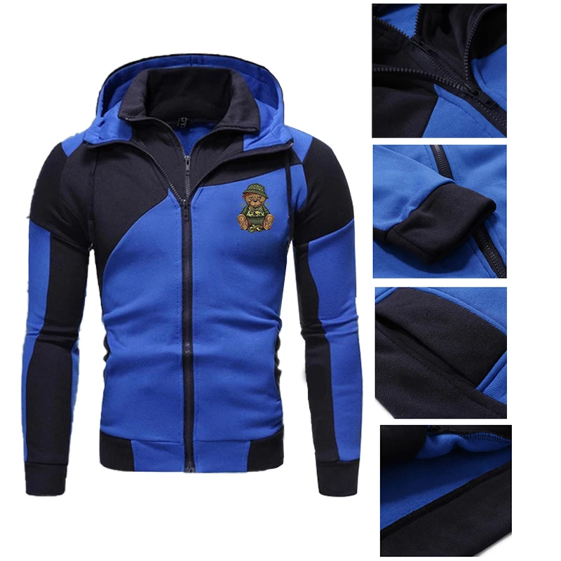 Зимняя модная мужская комбинированная куртка с рисунком медведя, Женская наружная молния с капюшоном, спортивное пальто, искусственное Мужское пальто