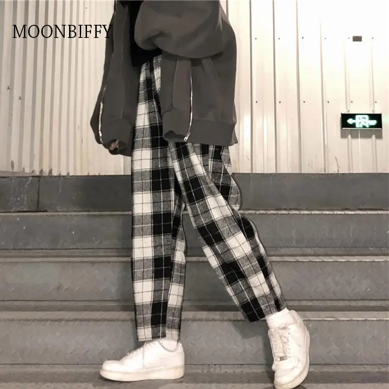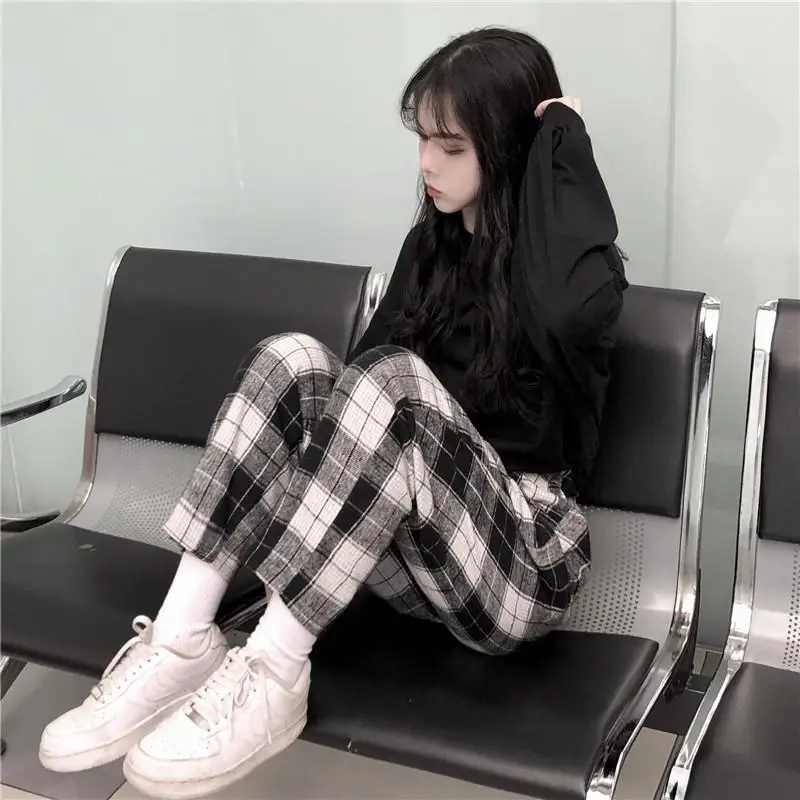 Женские брюки в клетку в стиле Харадзюку, уличная одежда, женские ш...