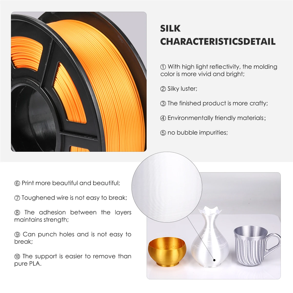 Шелковая нить SUNLU, 1 кг, 1,75 мм в рулоне для 3D-принтера