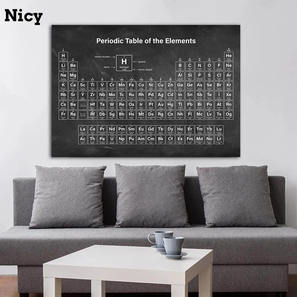 Периодическая таблица элементов, плакат для студентов по химии, научное искусство, холст, печать, живопись, лаборатория, декоративная картина