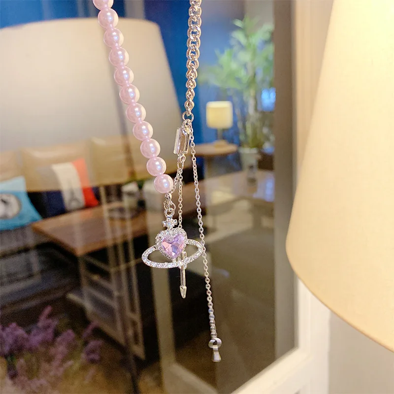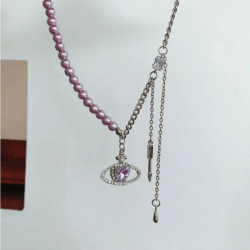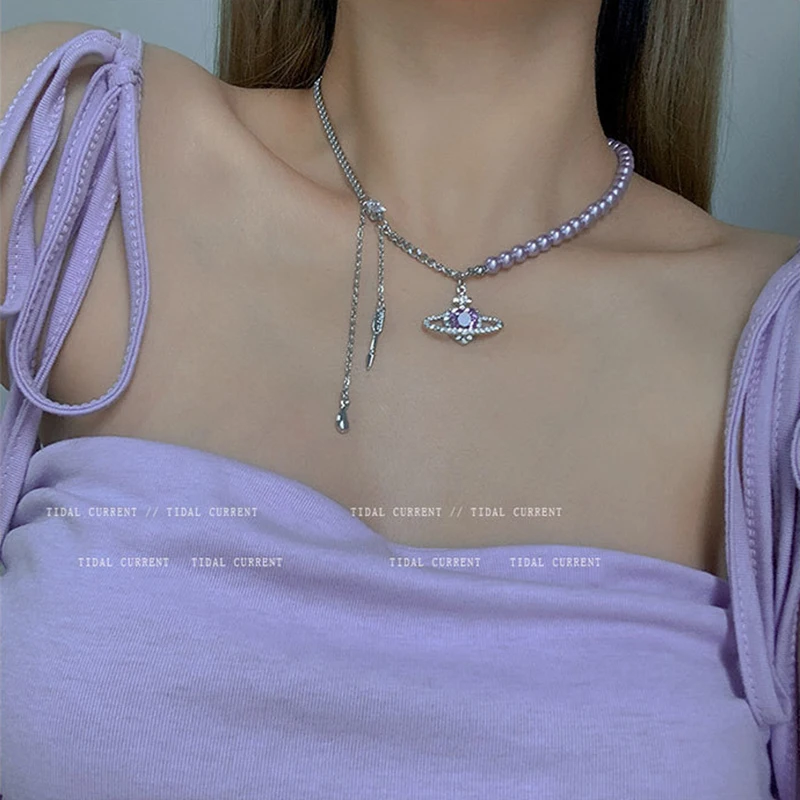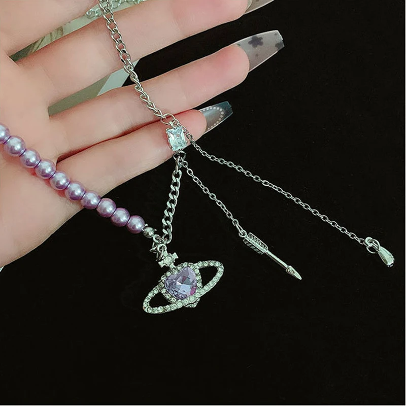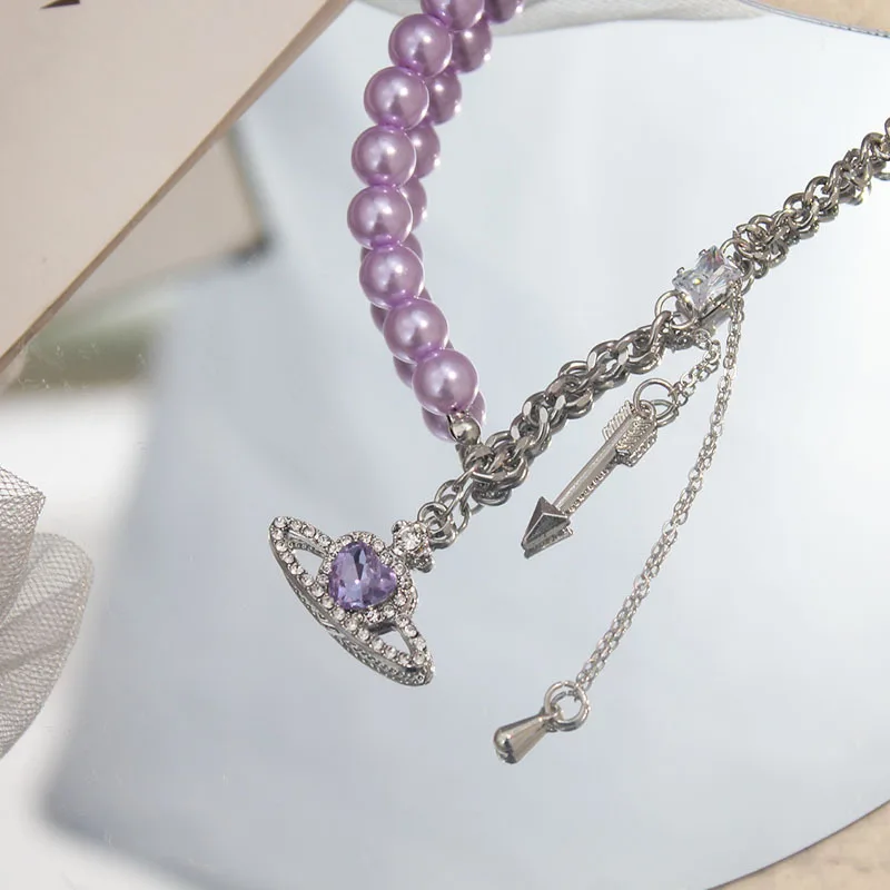 Наименование товара: горячая распродажа, фиолетовые ожерелья с изображением планет для женщин, модные французские романтические стильные цепочки в форме сердца, трендовые винтажные пляжные ювелирные изделия