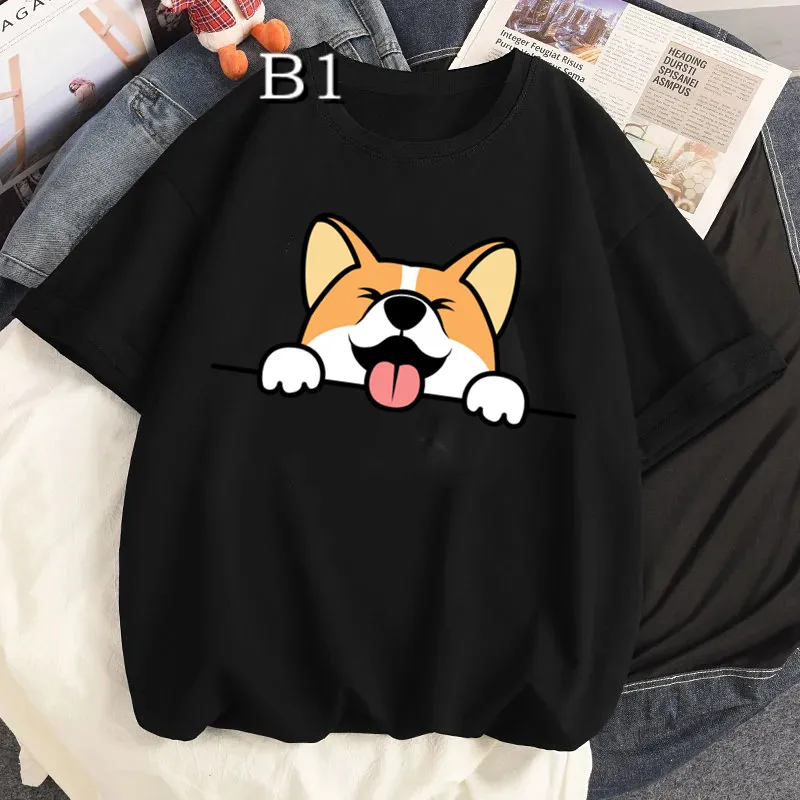 Harajuku Corgi Print TshirtSummer Plus Size Clothe