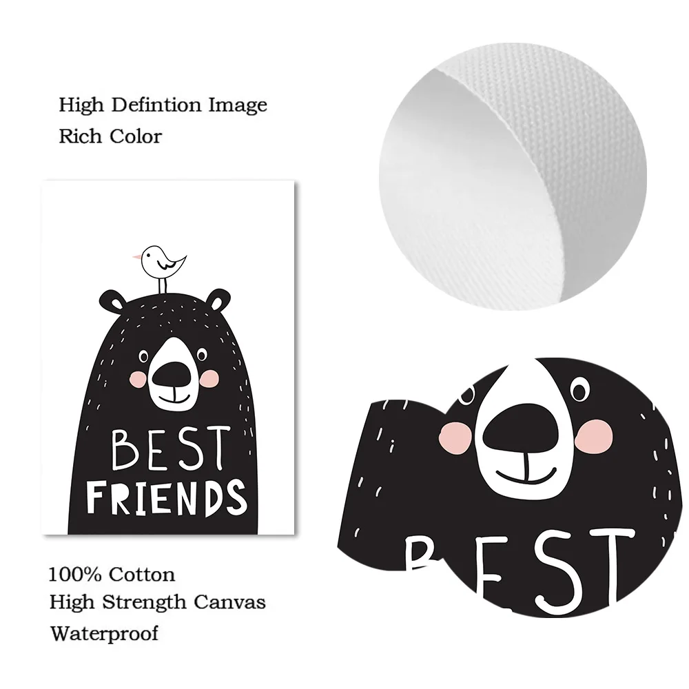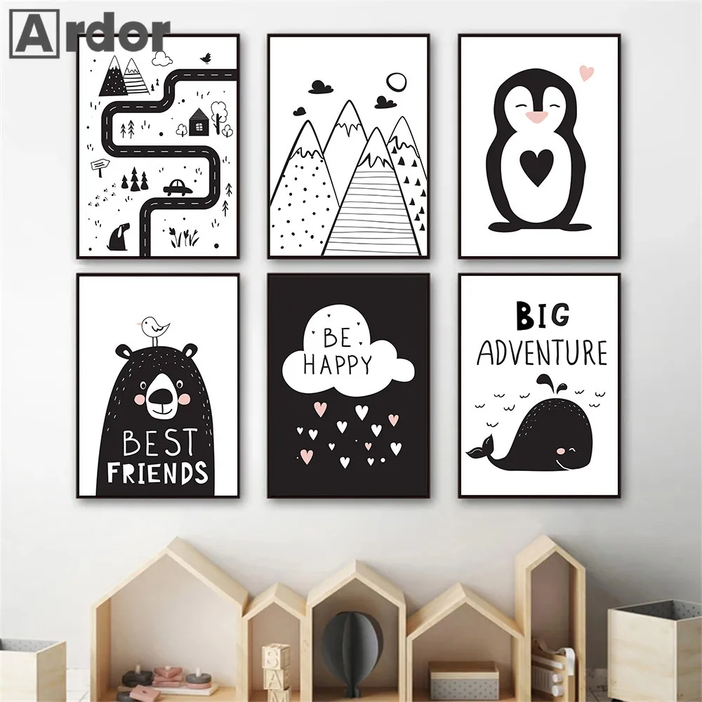 Гора облако печать Пингвин медведь черный и белый холст искусство стены картина Алфавит стены картины декор детской комнаты