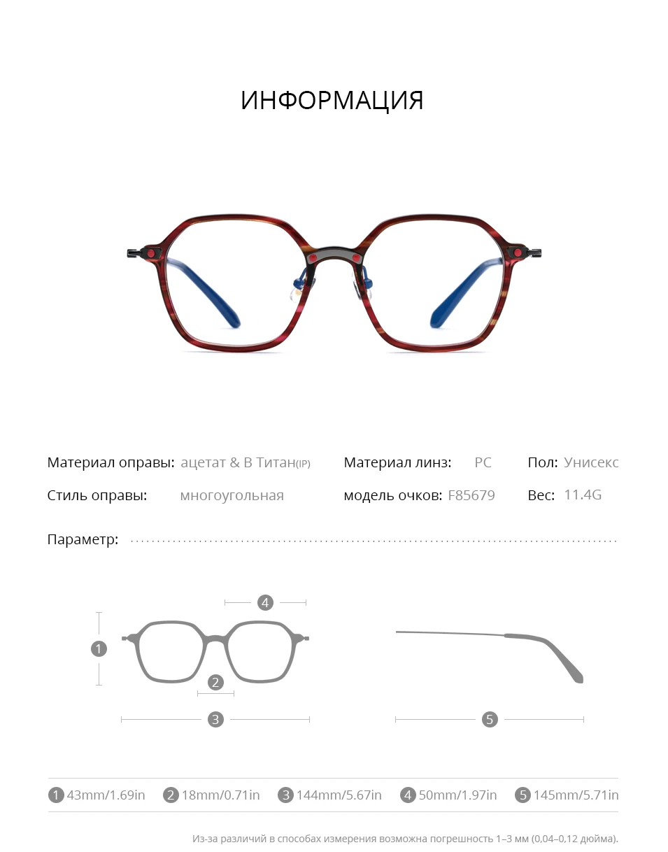 FONEX Оправа для очков Женская многоугольная из титана и ацетата