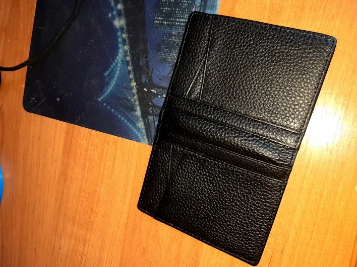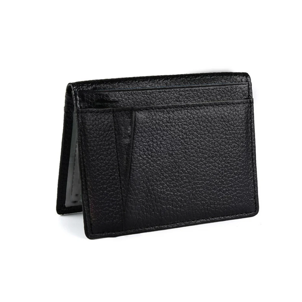 Мужской тонкий однотонный кошелек из 100% натуральной кожи, Мужской Повседневный тонкий держатель для кредитных карт, чехол для удостоверения личности, мужской кошелек, черный полезный кошелек