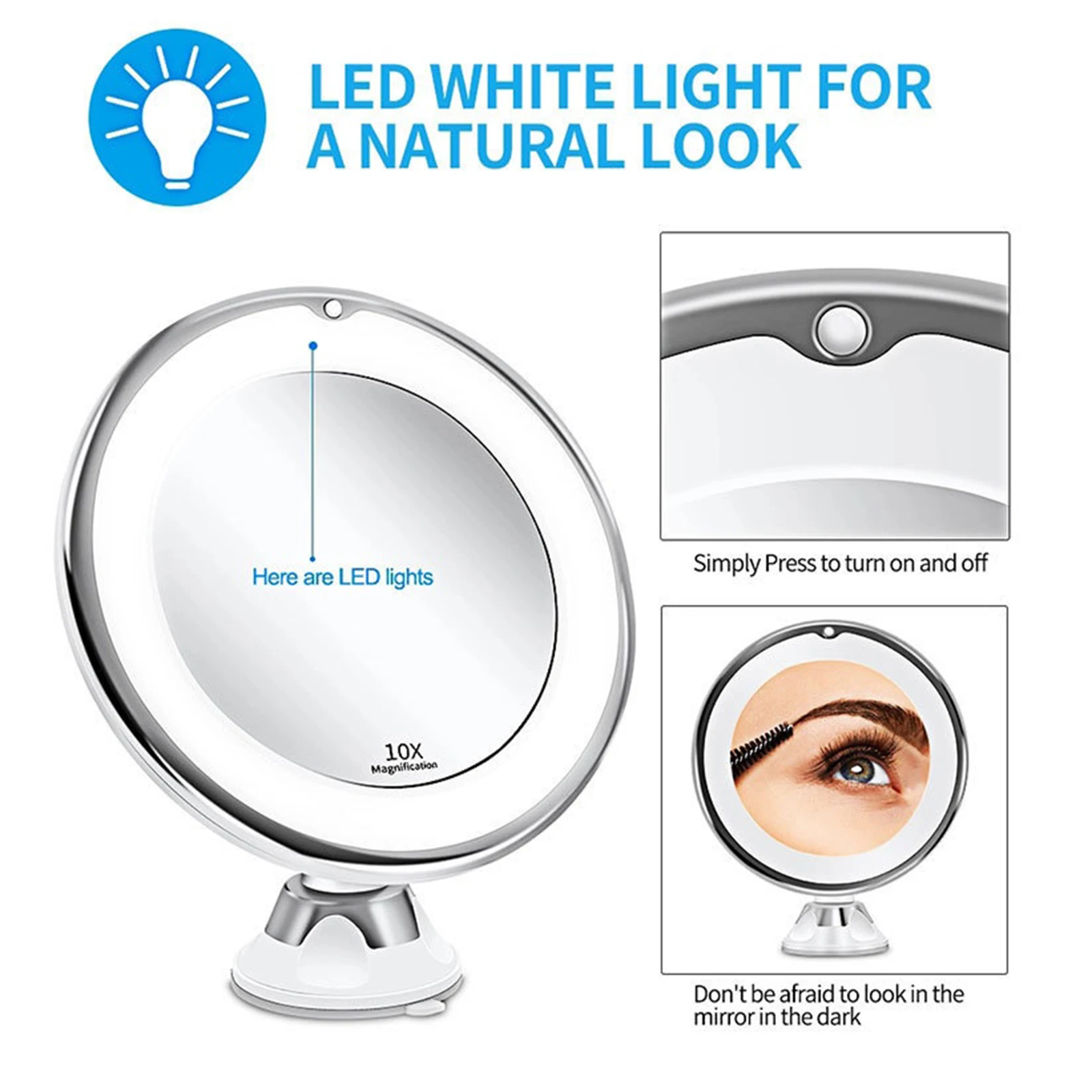 Зеркало для макияжа с 10-кратным увеличением и светодиодный подсветильник кой, 3 цвета