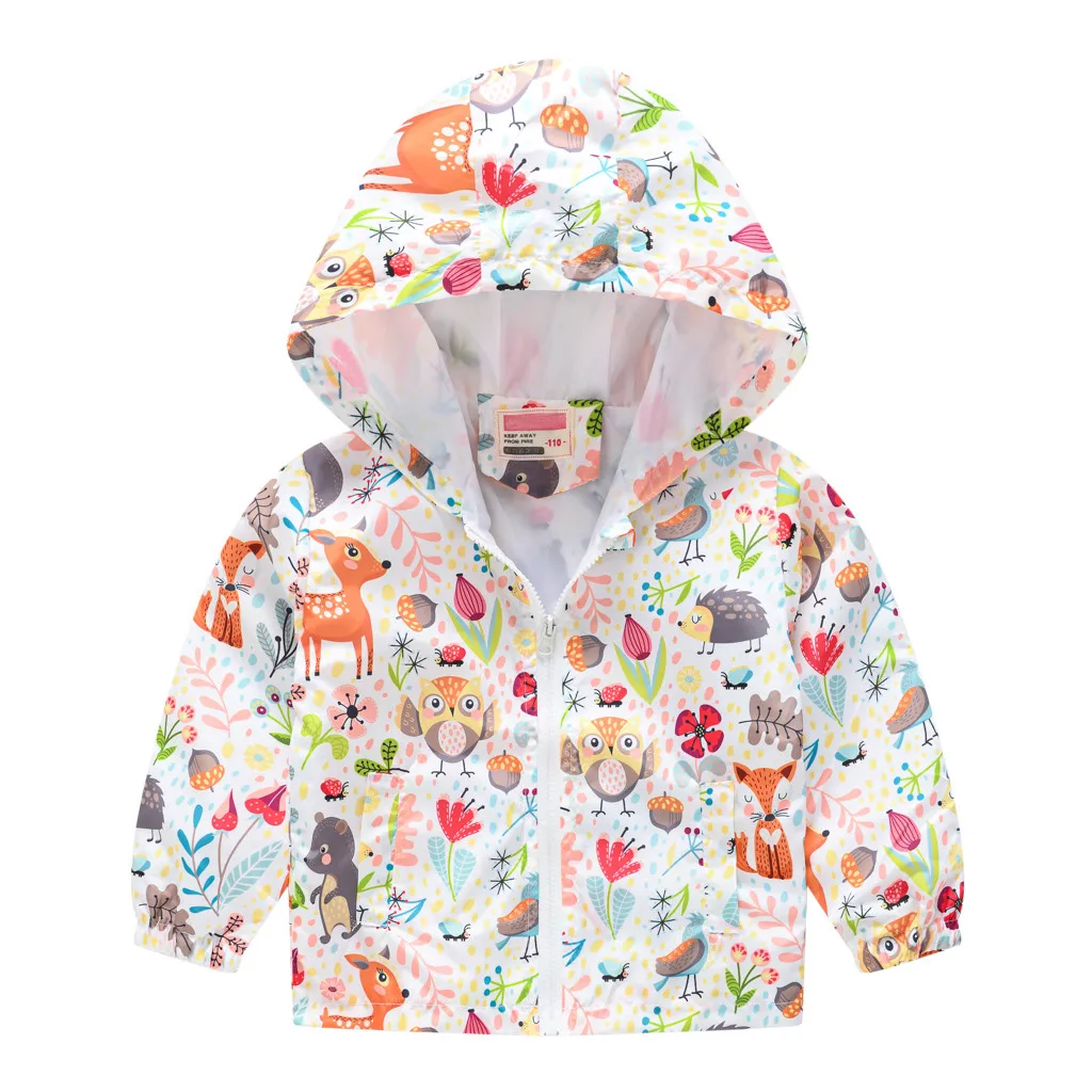 Куртки для девочек; Одежда для малышей; Осенняя куртка с рисунком для маленьких мальчиков; Ветровка на молнии с капюшоном; Милое ветрозащитное пальто для малышей