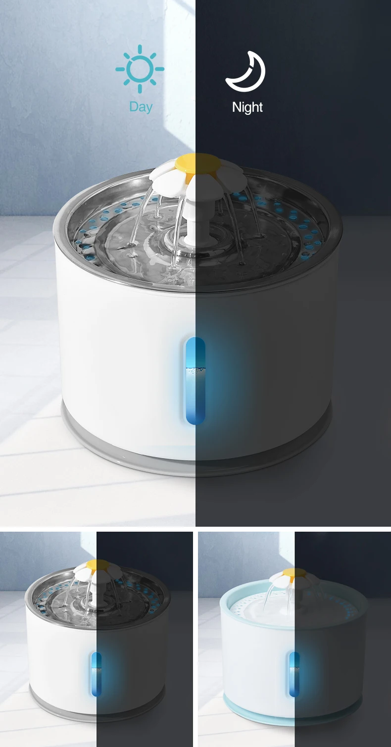 Как использовать:1. Соберите корпус и чашу, поместите насос в нужное место2. Вставьте в дренажную колонну и поместите дренажный диск3. Поместите фильтр на дренажный диск4. Поместите Цветной корпус и поднос для питья, подключите шнур питания Спецификация:Размер: 188*188*149 ммМатериал: полипропиленовая смола + нержавеющая стальВес: 0,6-0,9 кгЕмкость: 2.4L/80 OzИсточник питания: 5 В постоянного тока 1AМощность: 1,5 WРекомендуемый Тип питомца: кошки и средние/маленькие собаки Что в посылка:1x из нержавеющей мульти-ПЭТ фонтан1x угольный фильтр1x фильтр из пены1 цветок1 фонтанный насос с usb-портом для зарядки1x руководство по эксплуатации О датчике движения: 1. Автоматическое включение проточной воды при приближении питомца, оставьте диапазон срабатывания 2-3 метра, фильтр в течение 30 секунд, а затем автоматически Встаньте;2. Преимущества: бесшумный, энергосберегающий, продлевает срок службы фильтрующего элемента и водяного насоса, и может лучше привлечь домашних животных, чтобы пить больше воды3. Индукционный диапазон: диапазон использования около 0,2-3 м