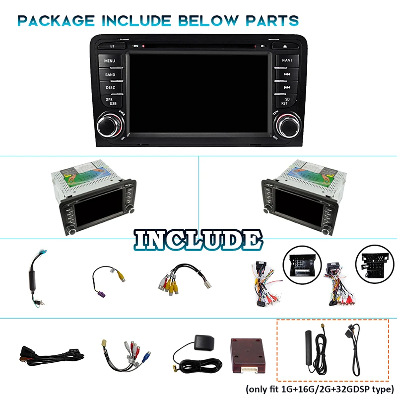 Костюмы для:Для Audi A3 8P (2003-2012)Для A3 8P1 3-дверей (2003-2012)Для S3 8P (2006-2012)]Для RS3 Sportback (2011-2012)Размер этой единицы составляет 240*228*124 мм1. Подарок = инструменты + микрофон + копия файлов карты в GPS внутри (вы можете использовать gps напрямую, не включая карту карты).