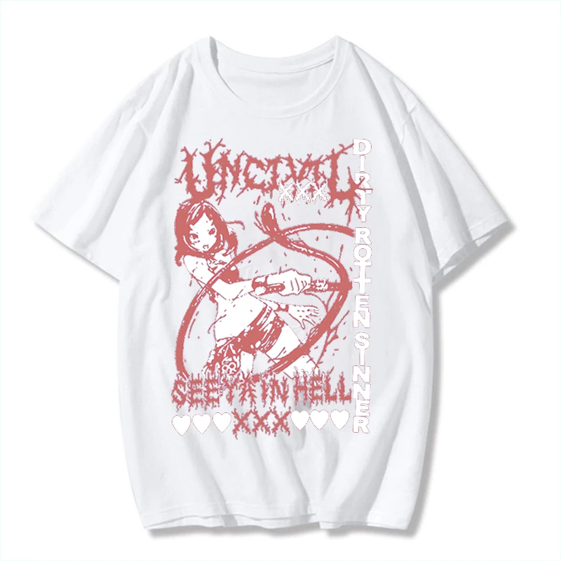 Топы в стиле Харадзюку, футболка оверсайз, Футболки унисекс в готическом стиле с коротким рукавом, женские футболки, уличная одежда, футболка в стиле панк, аниме, Дамский альбом